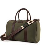 Varon Small Travel Bag - Brown Leather and Forest Canvas with Cram Stitching