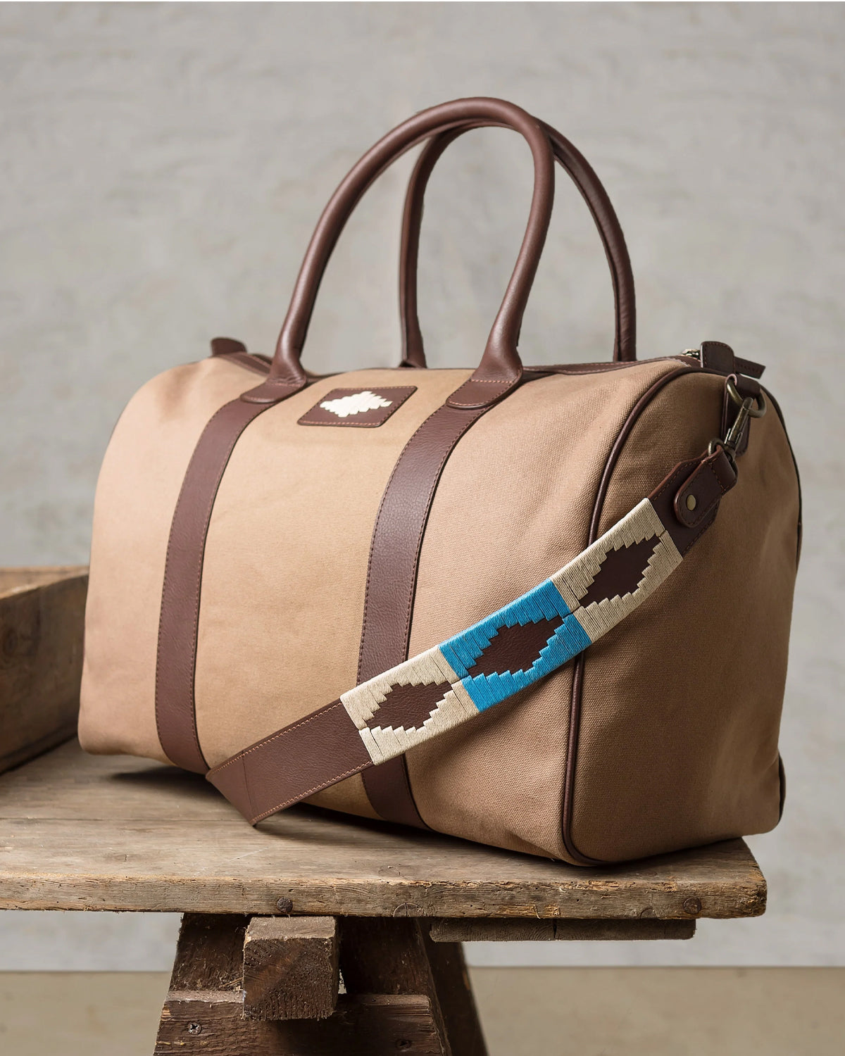 Varon Small Travel Bag - Brown Leather and Sand Canvas with Cram Stitching