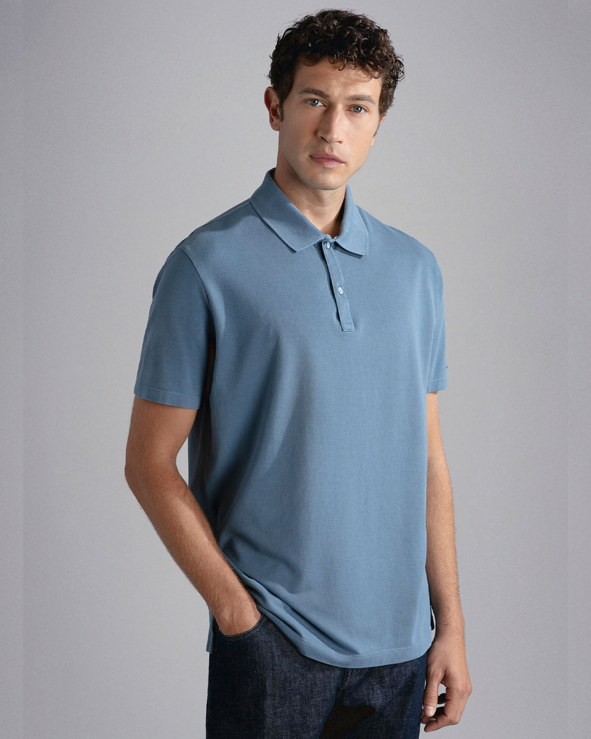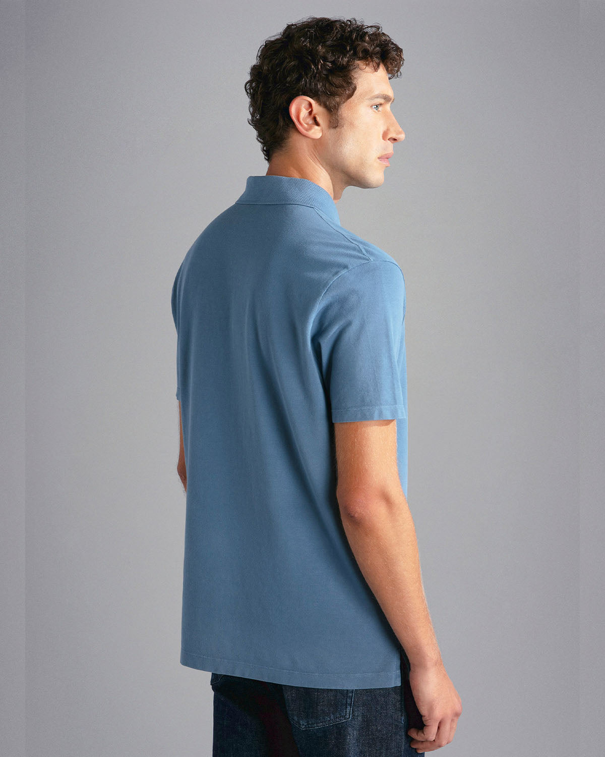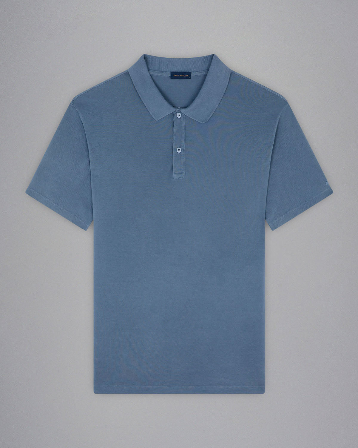 Blå poloskjorte fra Paul & Shark. Knitted Poloshirt har en regular fit med knappelukking, kort erm og ribbet krage.