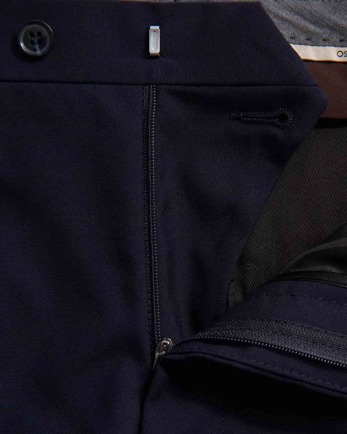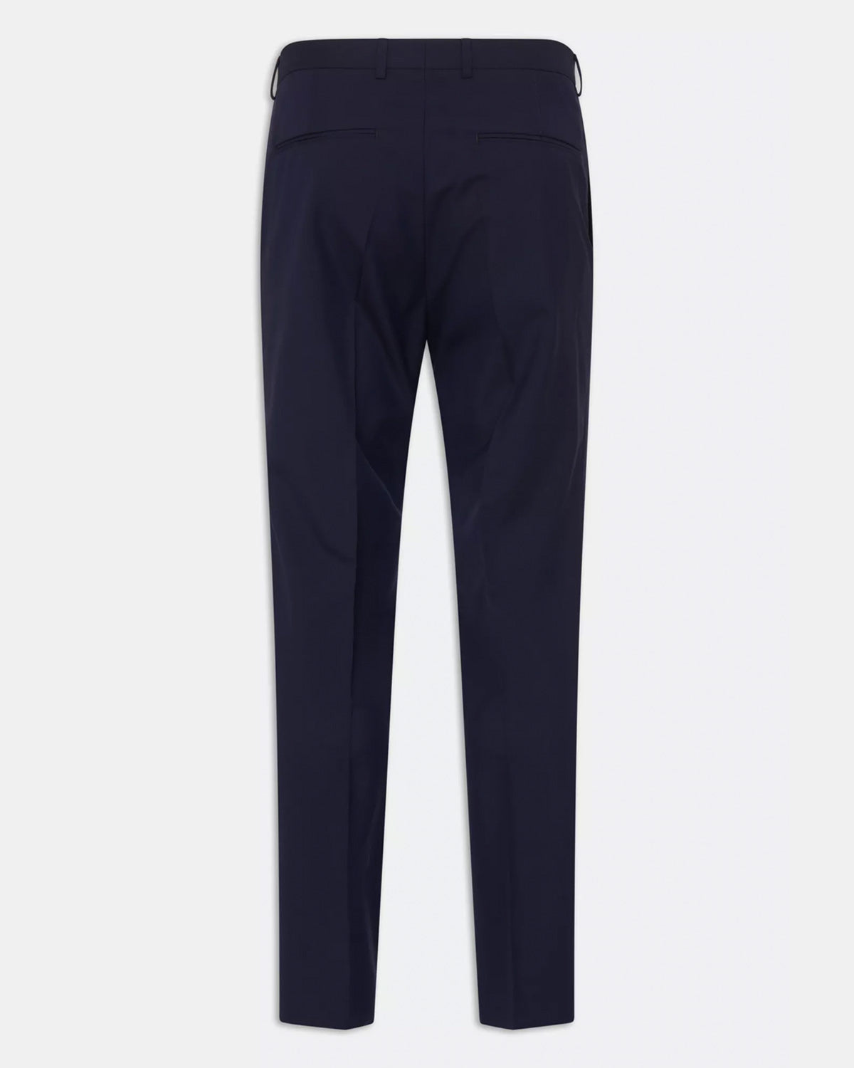 Mørk blå dressbukse i lekker ullkvalitet fra Oscar Jacobson. Denz Trousers er en populær bukse i smal passform og stilrent design. Buksa har normal høyde på livet og klassisk lengde.