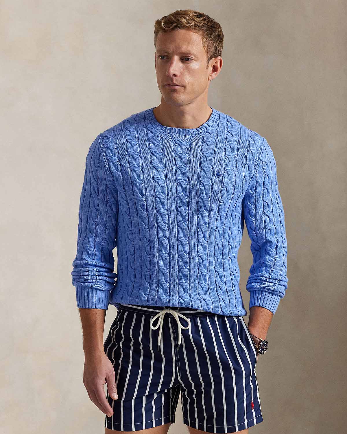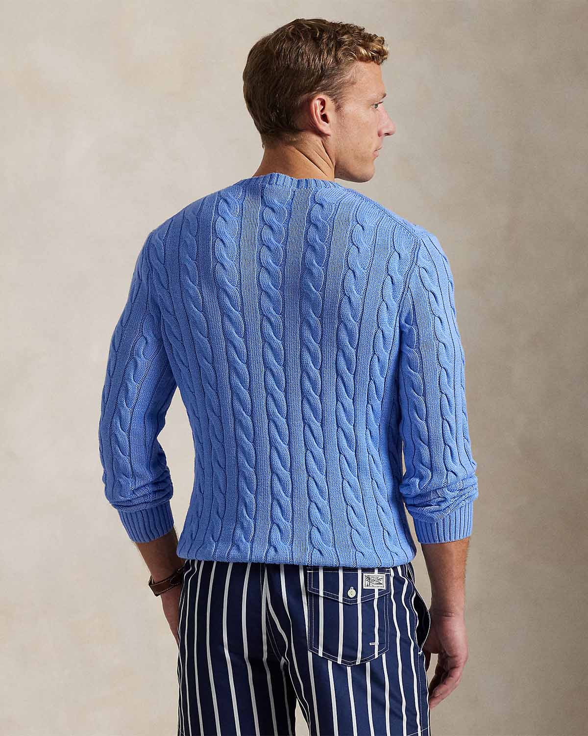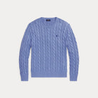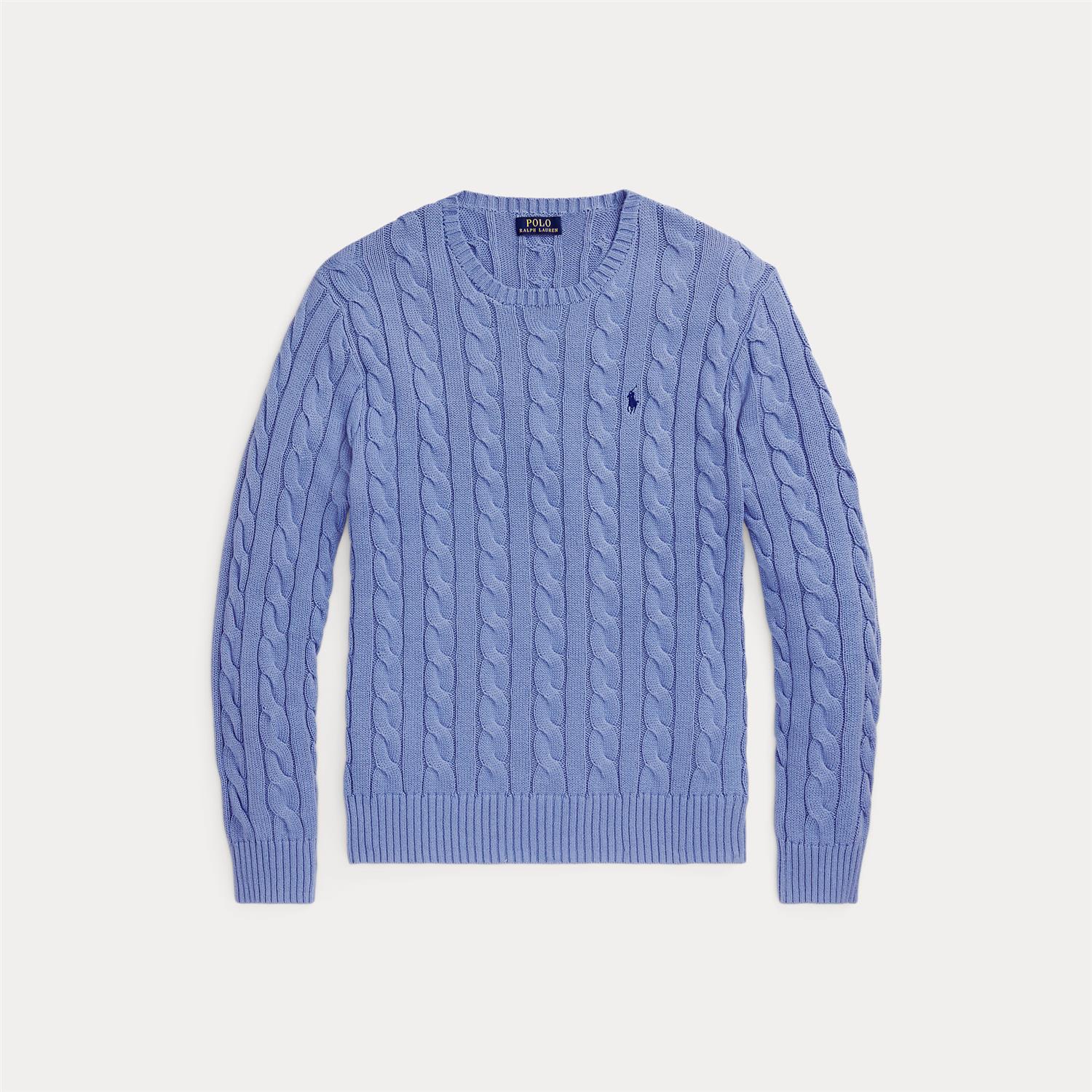 Denne bomullsgenseren kombinerer to av Polos mest ikoniske designelementer: et teksturelt kabelstrikket motiv og signaturponnyen.