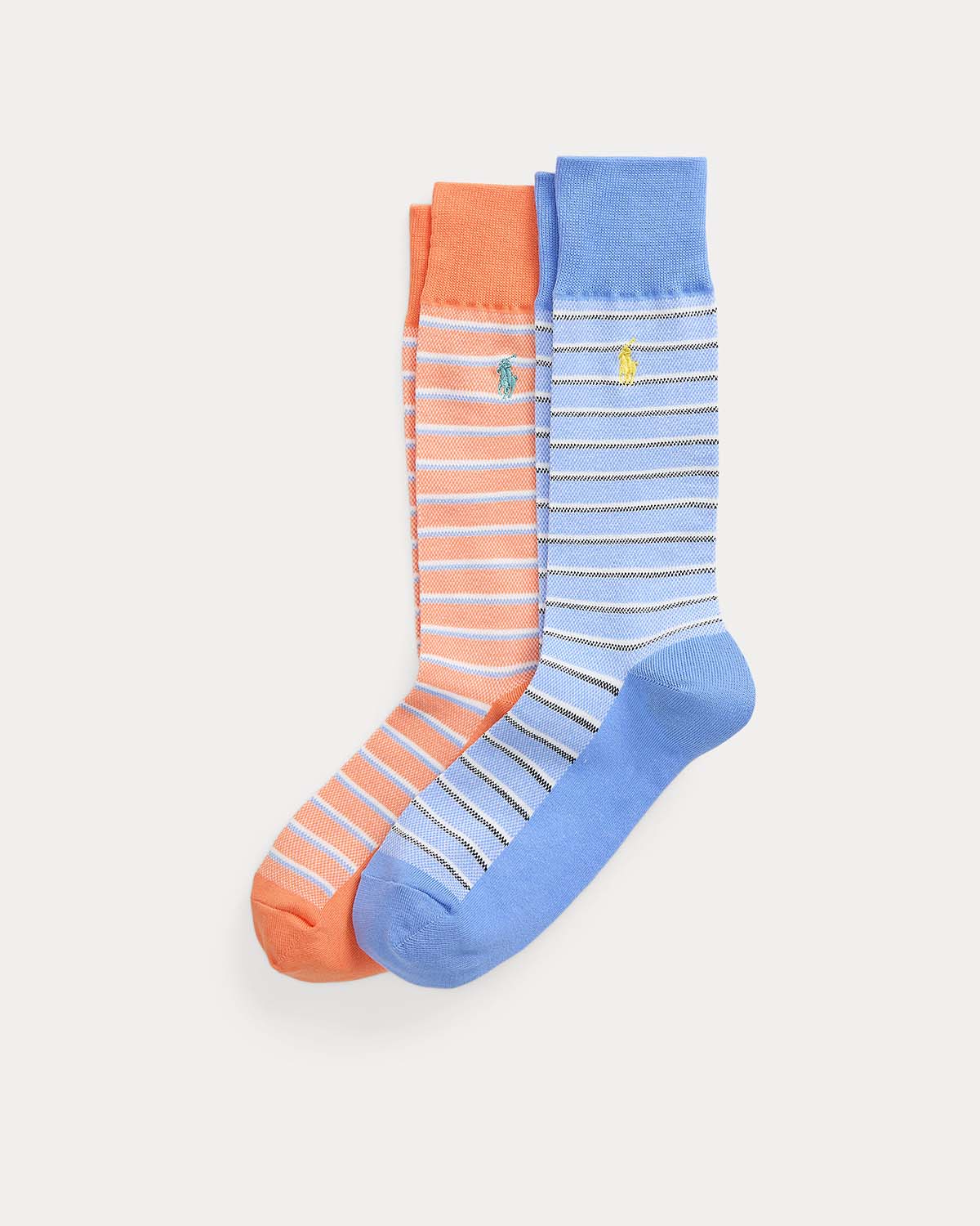 De myke sokkene i denne to-pakken har stripete mønstre og den signaturbroderte ponnien i sesongens nyanser.