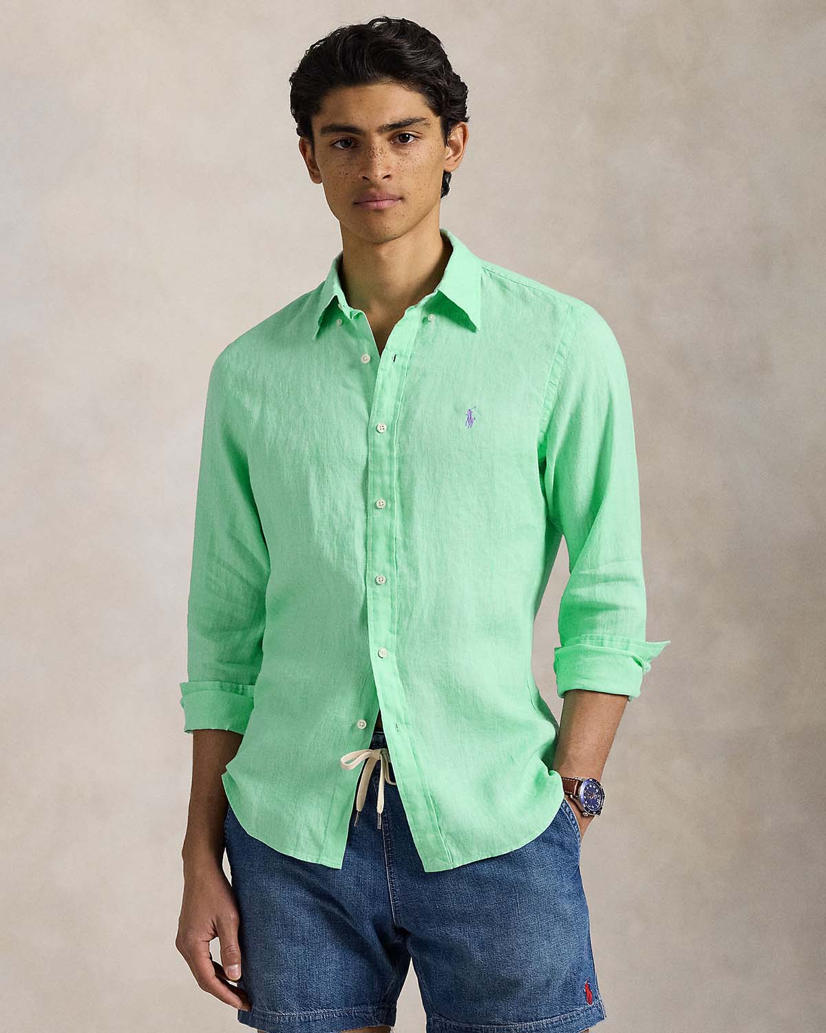 Lett, pustende lin gjør denne skjorten perfekt egnet for varme dager.
