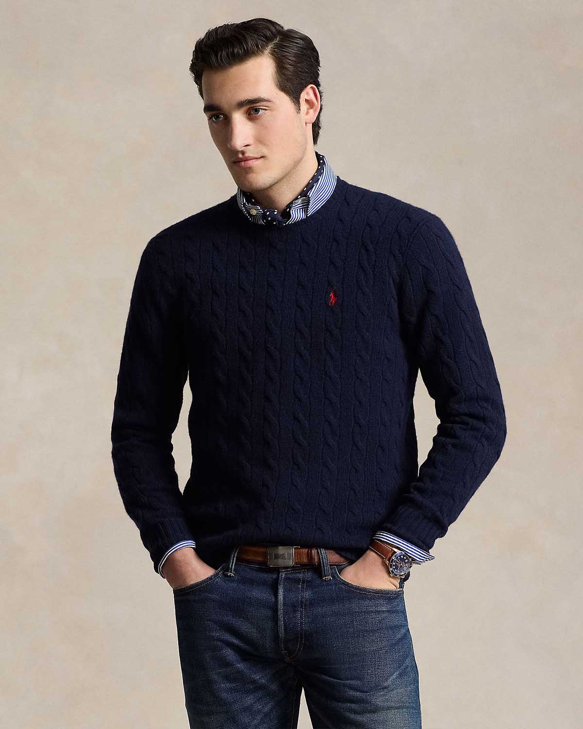 Denne tolkningen av deres ikoniske kabelstrikkede genser er laget med italiensk ullgarn som er spunnet med kashmir.