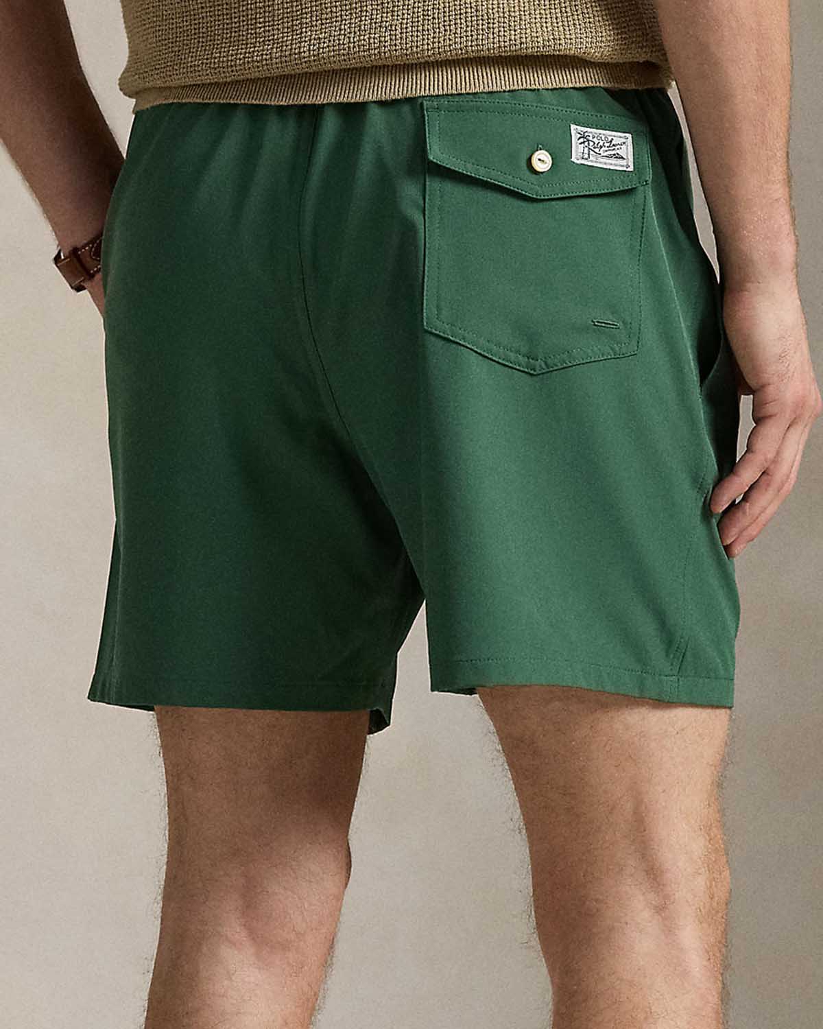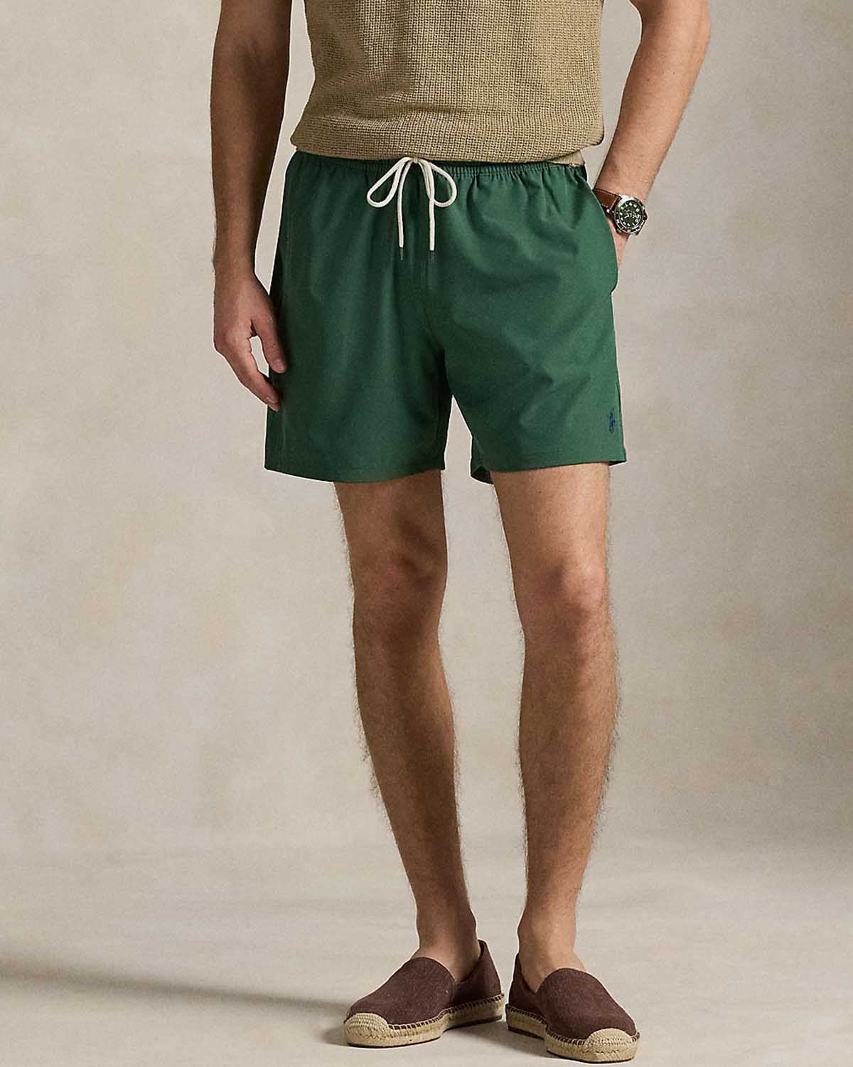 - «Polo Ralph Lauren Swimwear»-etikett på baklommen.