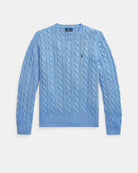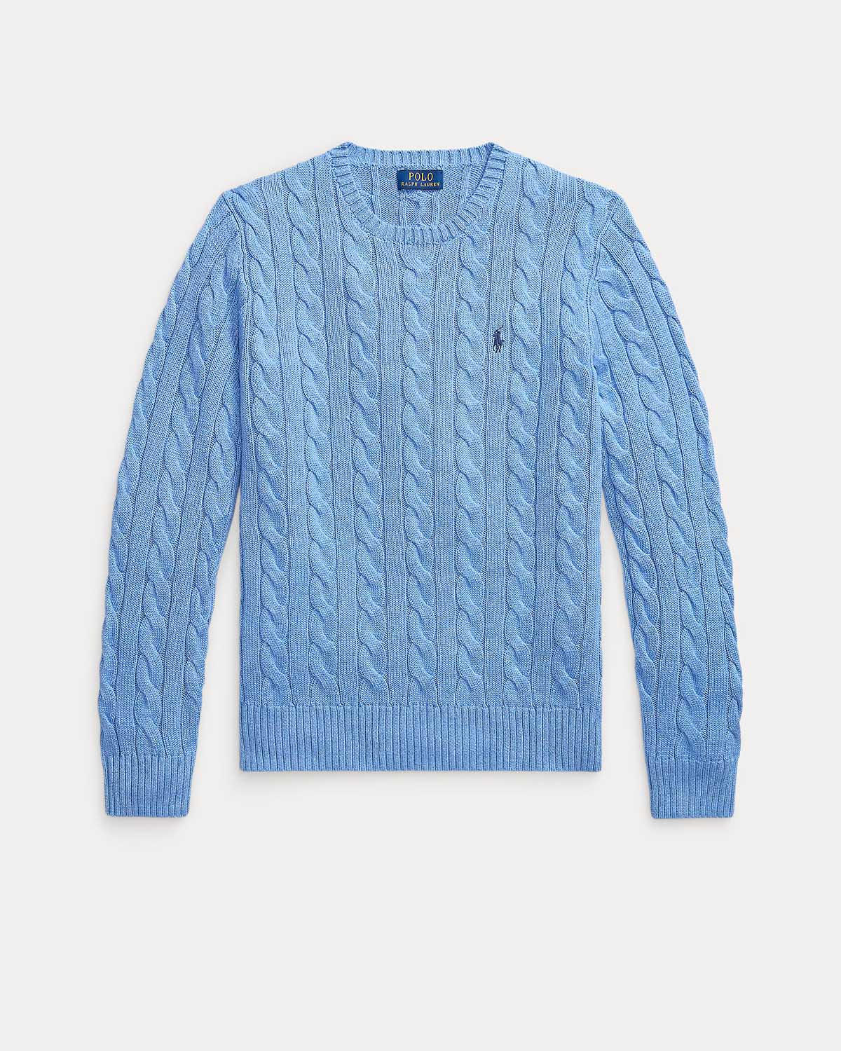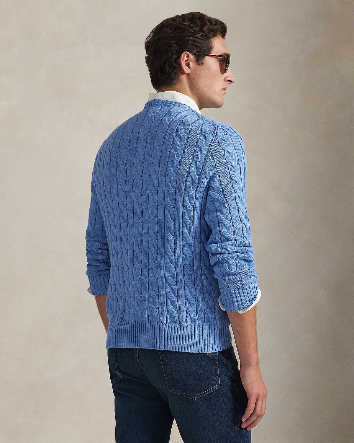 Denne bomullsgenseren kombinerer to av Polos mest ikoniske designelementer: et teksturert kabelstrikket motiv og den signaturbroderte Pony-logoen.