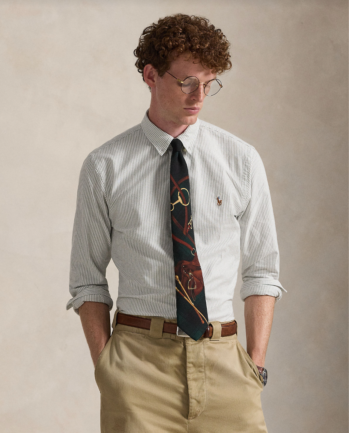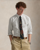 Oxfordskjorten debuterte veldig tidlig i Ralph Laurens design, og siden den gang har den befestet sin status som en bærebjelke i Polo-looken. I dag fortsetter Mr. Lauren å lage utallige varianter av sin ikoniske skjorte, inkludert denne stripete versjonen som er brodert med vår flerfargede signatur-Pony.
