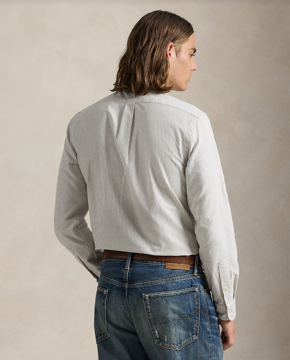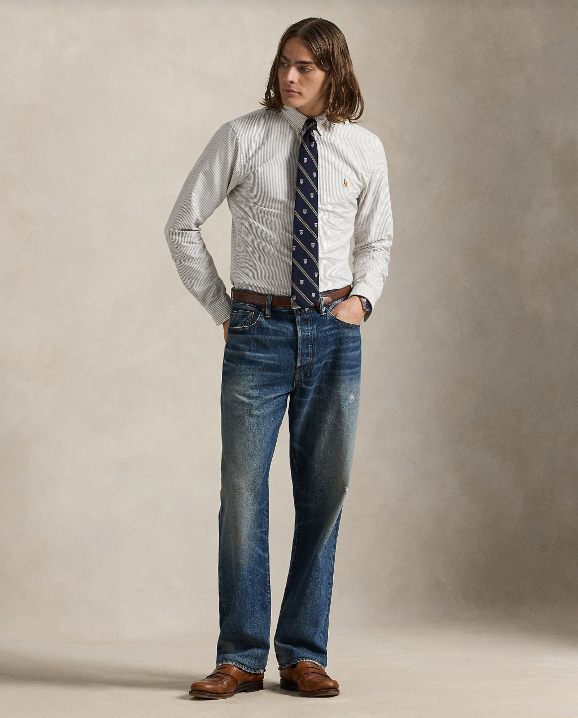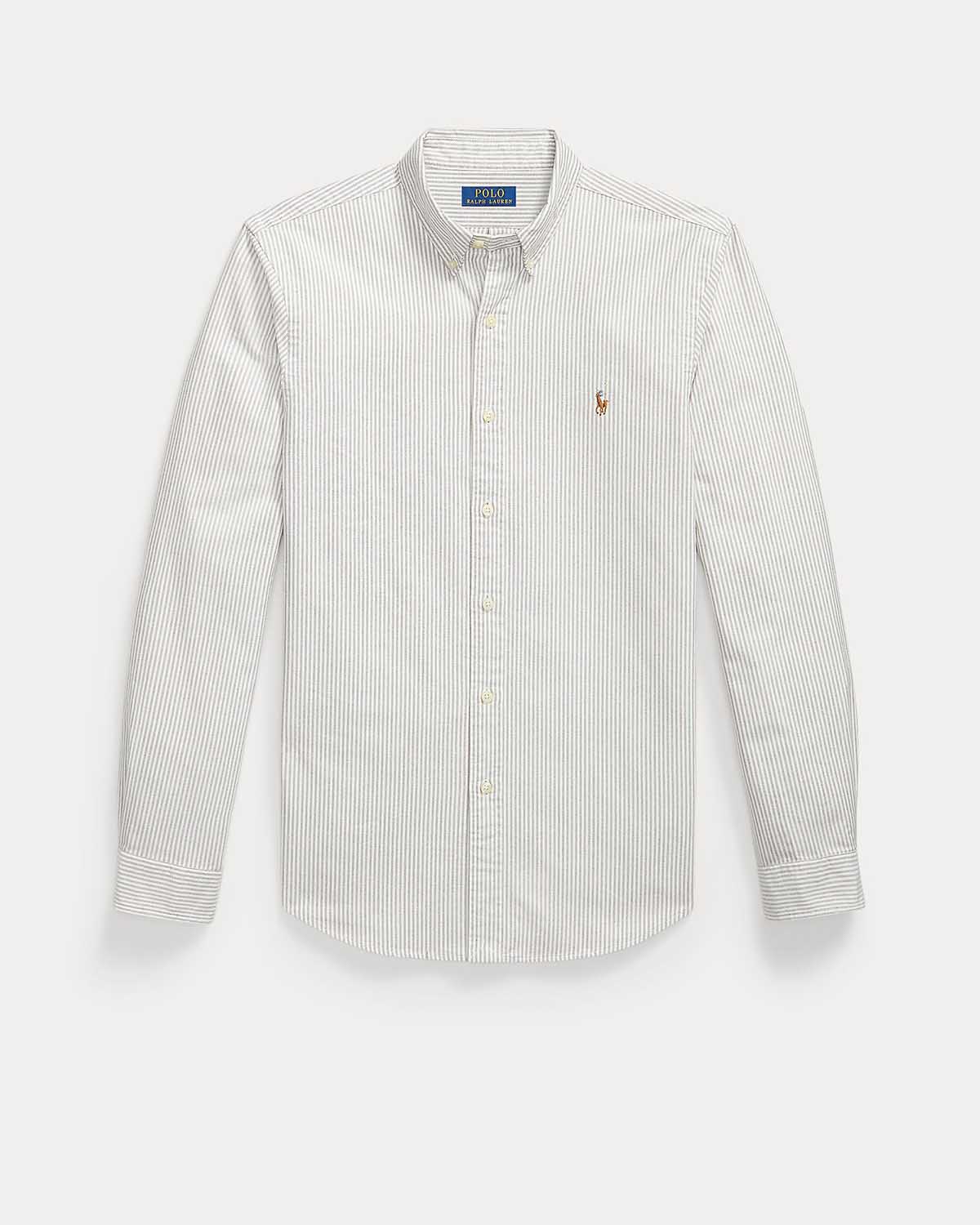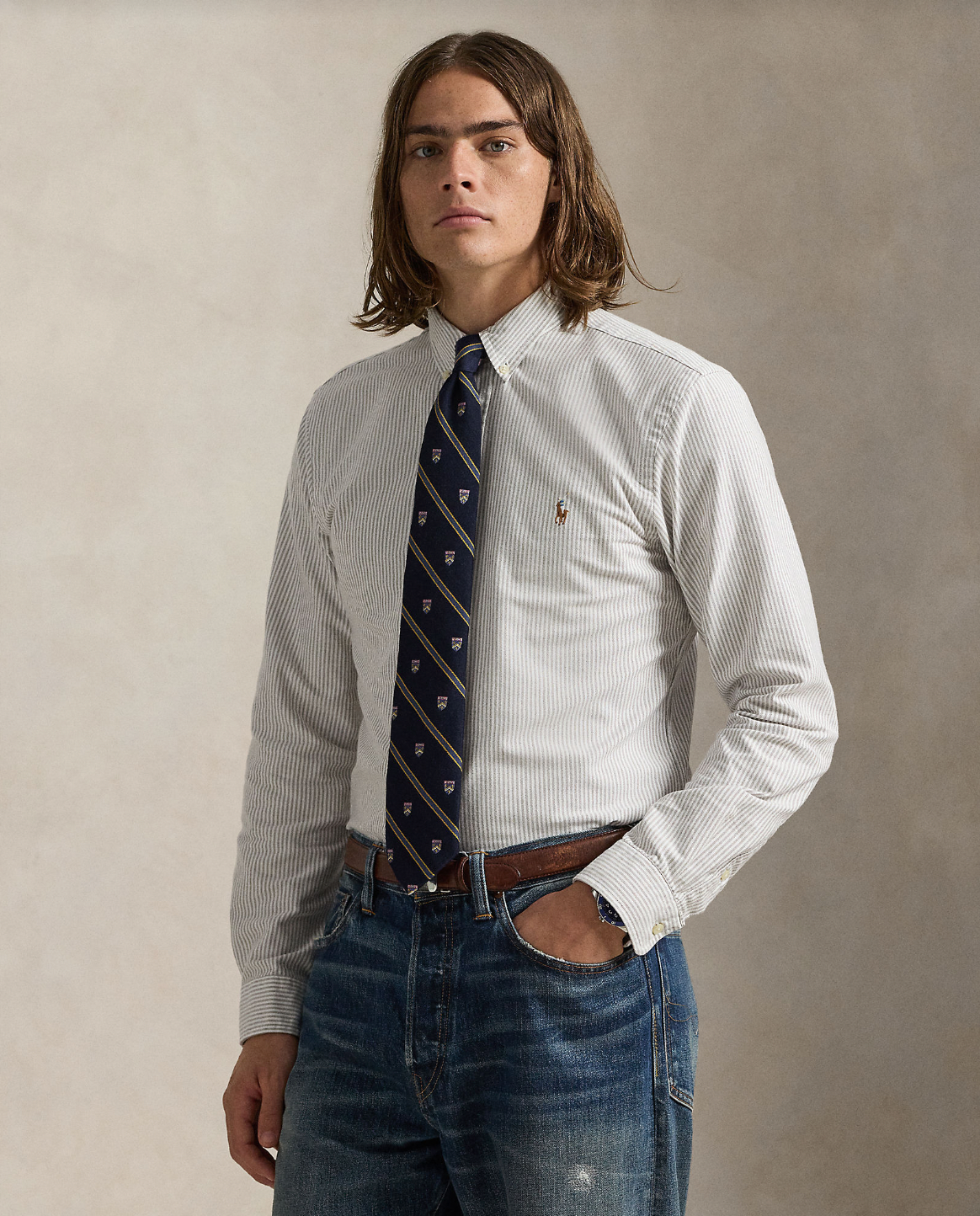 Oxfordskjorten debuterte veldig tidlig i Ralph Laurens design, og siden den gang har den befestet sin status som en pilar i Polo-looken. I dag fortsetter Mr. Lauren å lage utallige varianter av sin ikoniske skjorte, inkludert denne stripete versjonen som er brodert med vår flerfargede signatur-Pony.