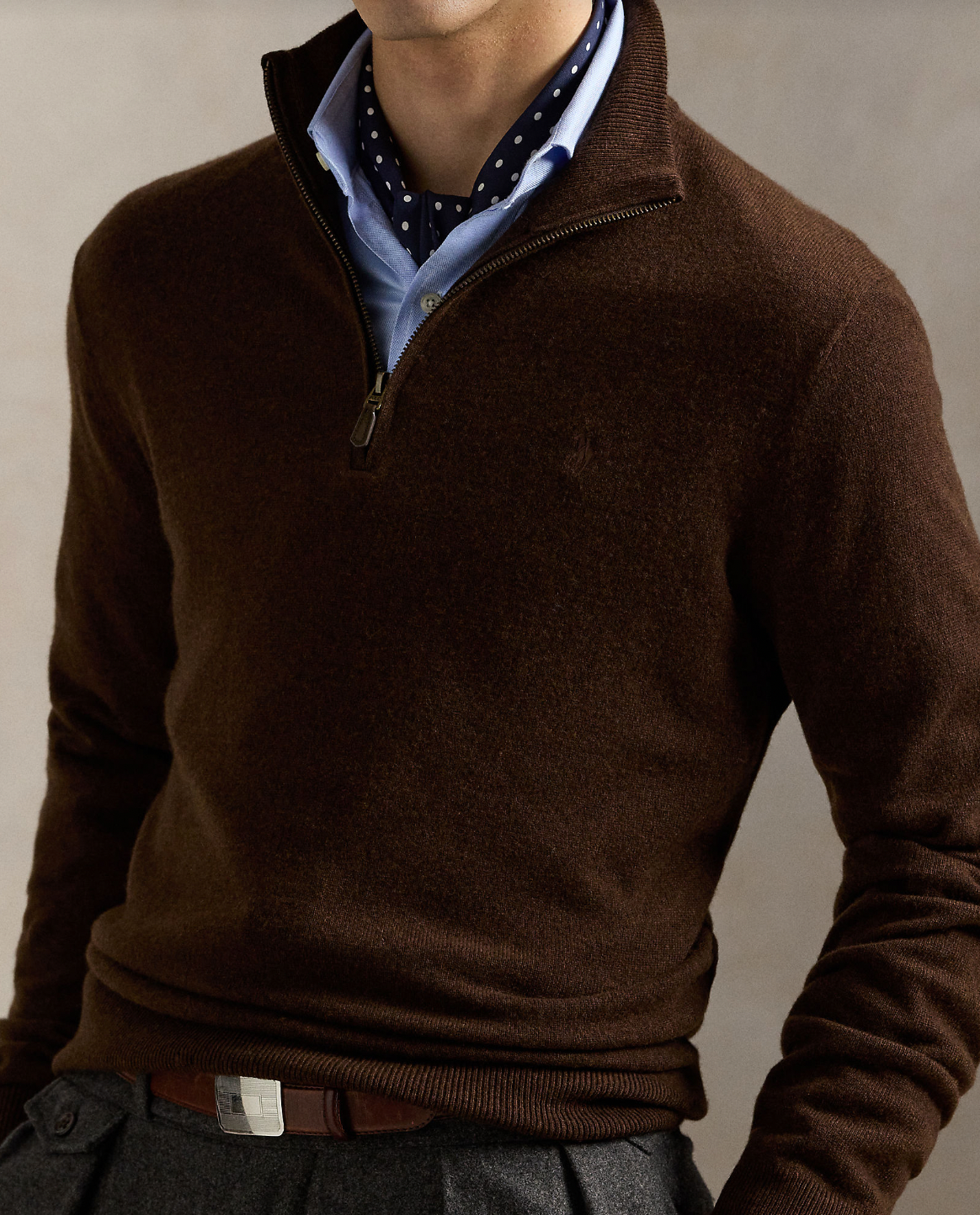 Klassisk Polo half zip genser i luksuriøs italiensk ull med deres signaturbroderte ponni. Perfekt alene eller over en skjorte.