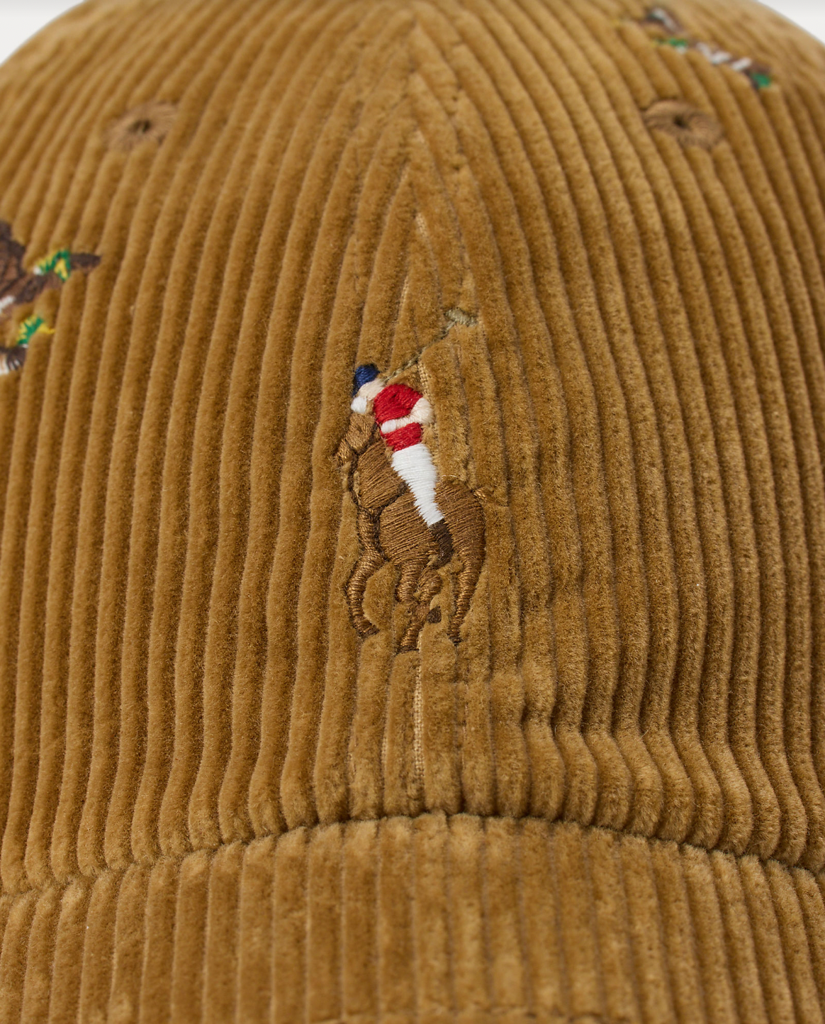 Lekker Polo caps i wide-wale bomull cordfløyel gir tekstur til denne baseball caps, som er brodert over hele med stokkand-motiver. Capsen kan justeres bak.