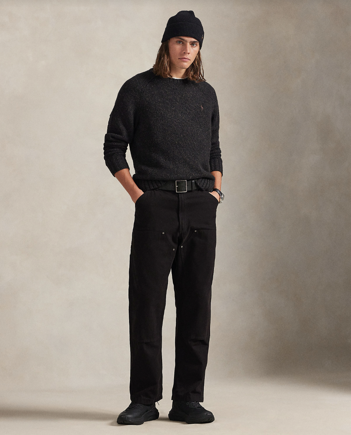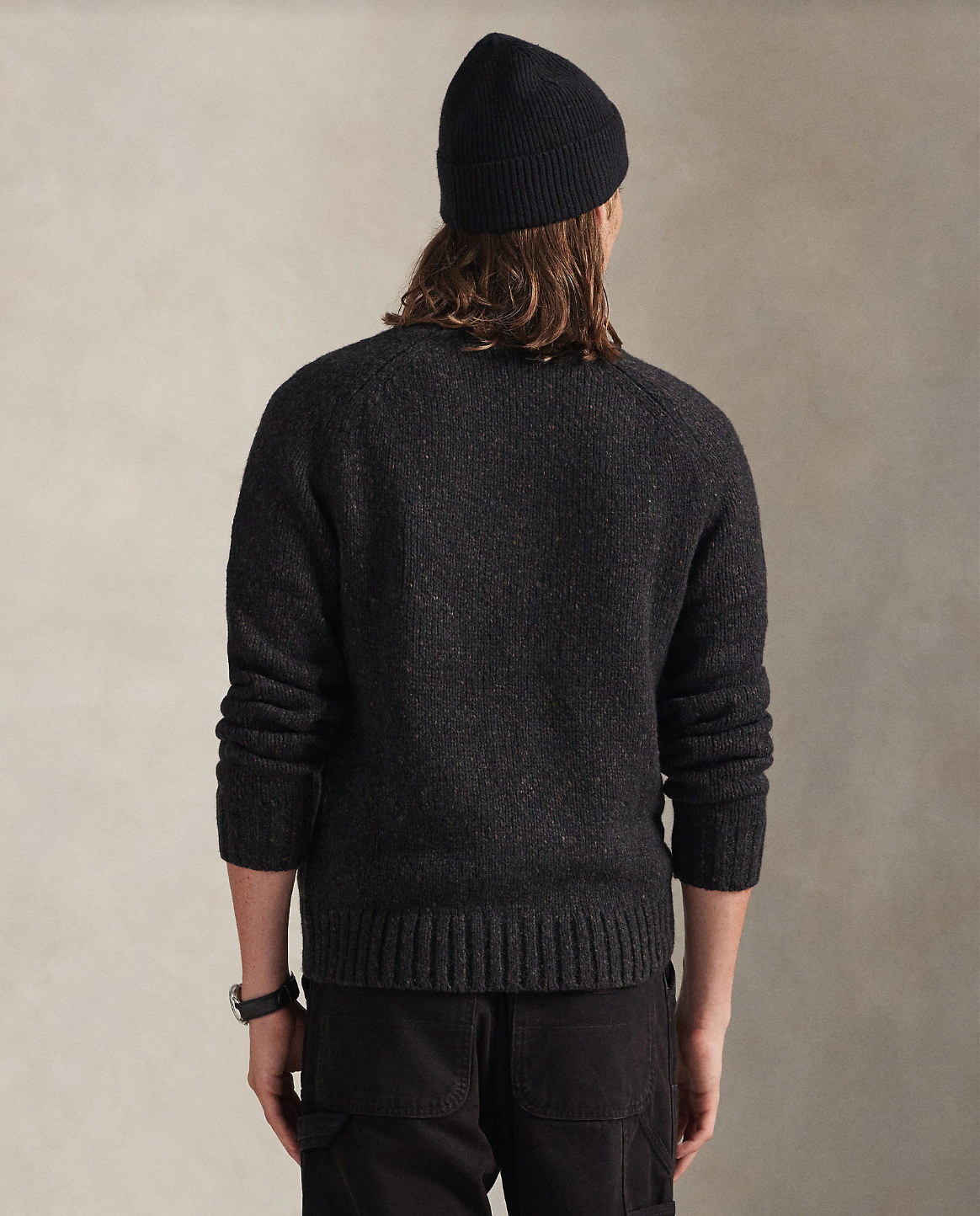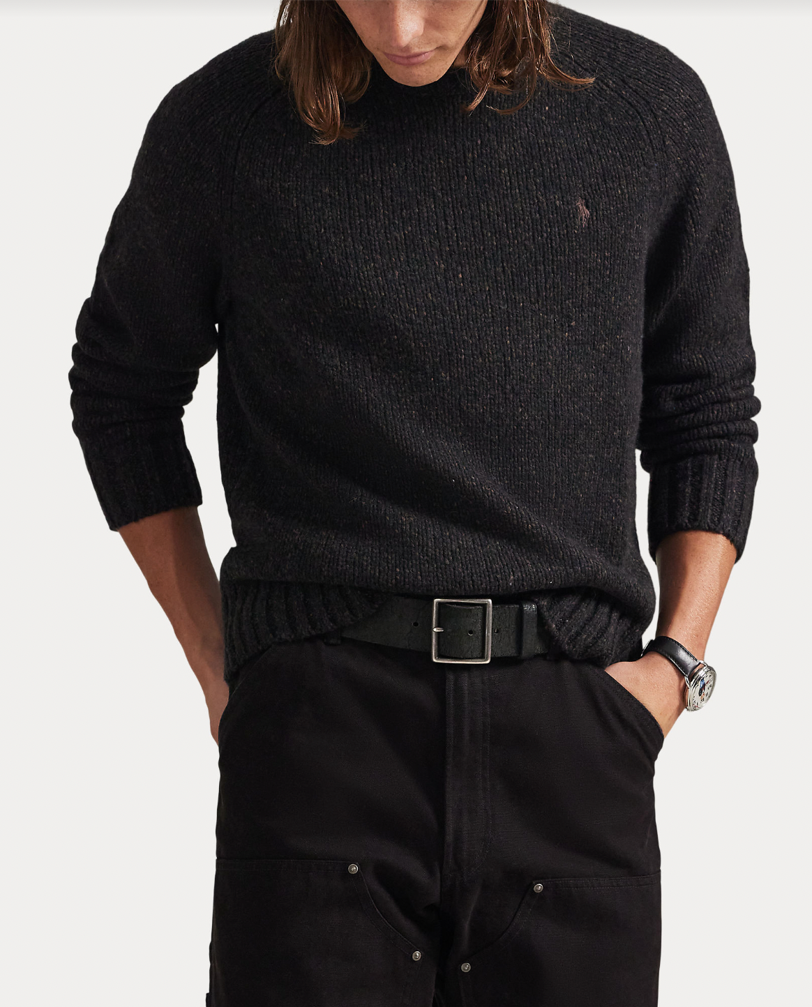 Polo strikkegenser i en lekker ullblanding hvor de har brukt et garn som gir en tonal dimensjon til denne tykkstrikkede genseren. Genseren har rundhals med deres signaturbroderte Pony i brunt på brystet.