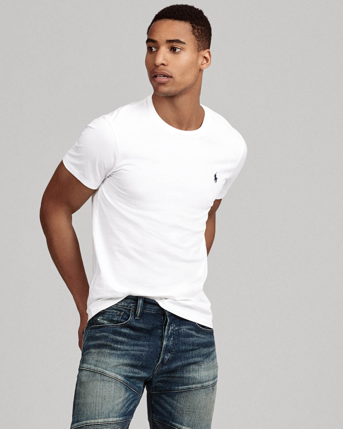 Hvit t-skjorte med brodert polospiller i blå fra Polo Ralph Lauren.