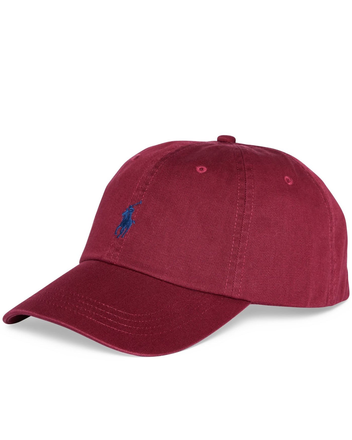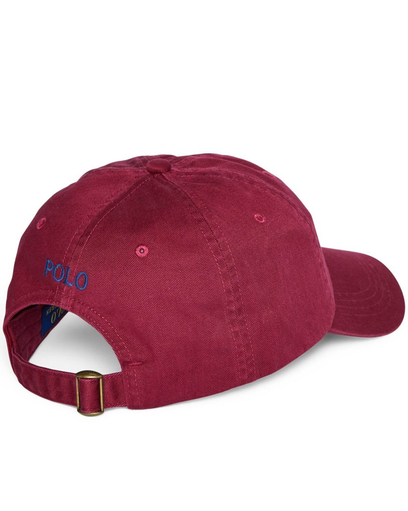 Caps fra Polo Ralph Lauren i en dempet rød med den ikonsike logoen i blå. Capsen har stramming bak,