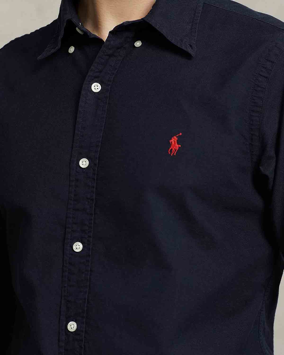 Mørkeblå skjorte fra Polo Ralph Lauren. Skjorten fullføres av den ikoniske pony-logoen brodert på brystet. Klassisk skjorte som kan styles til mange underdeler!