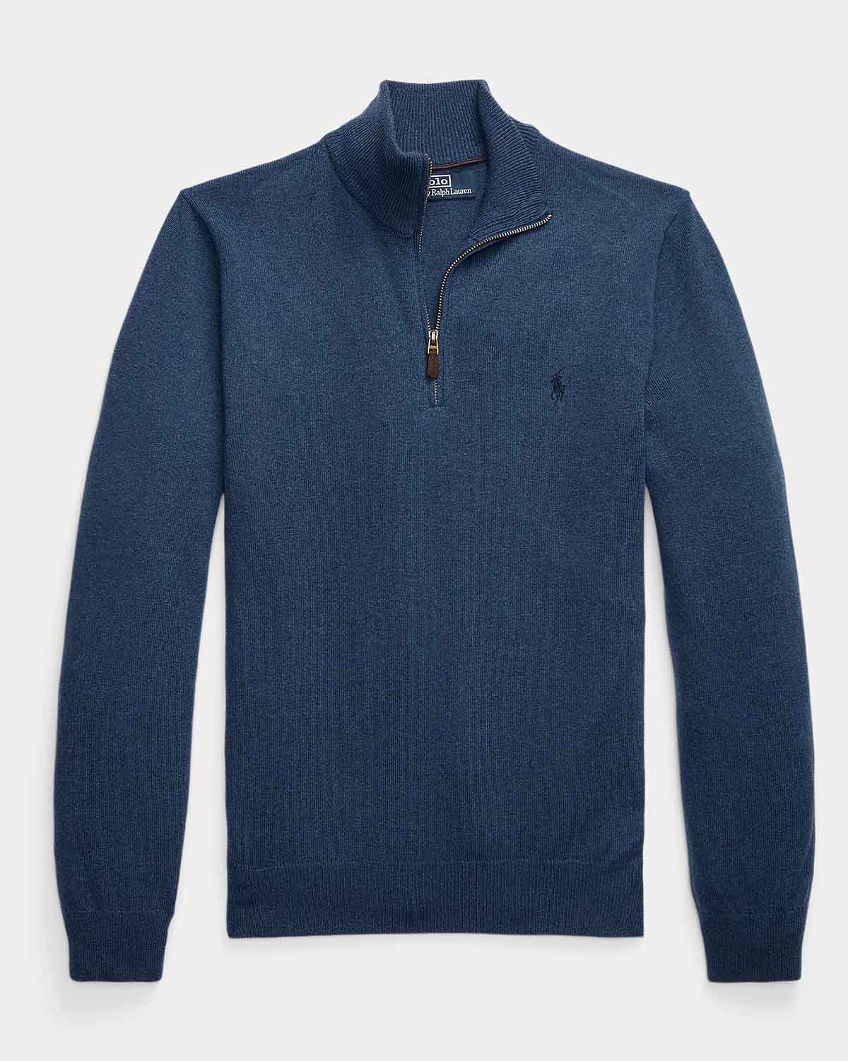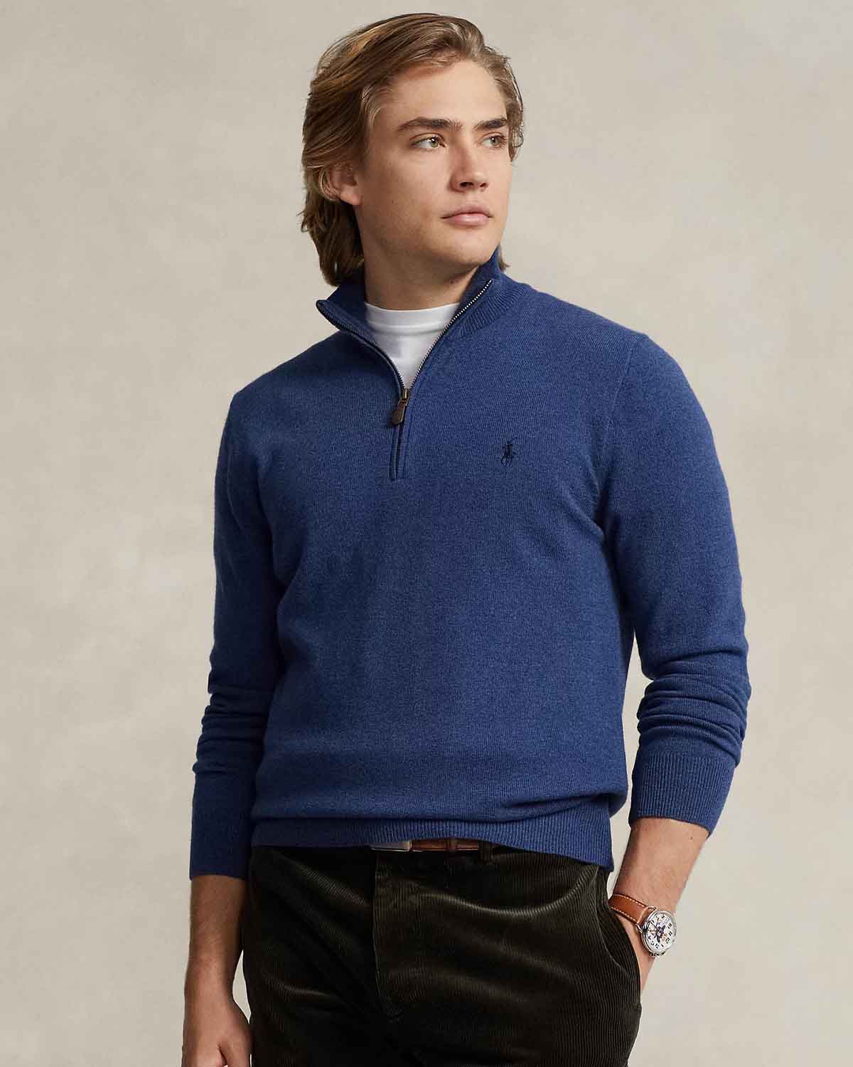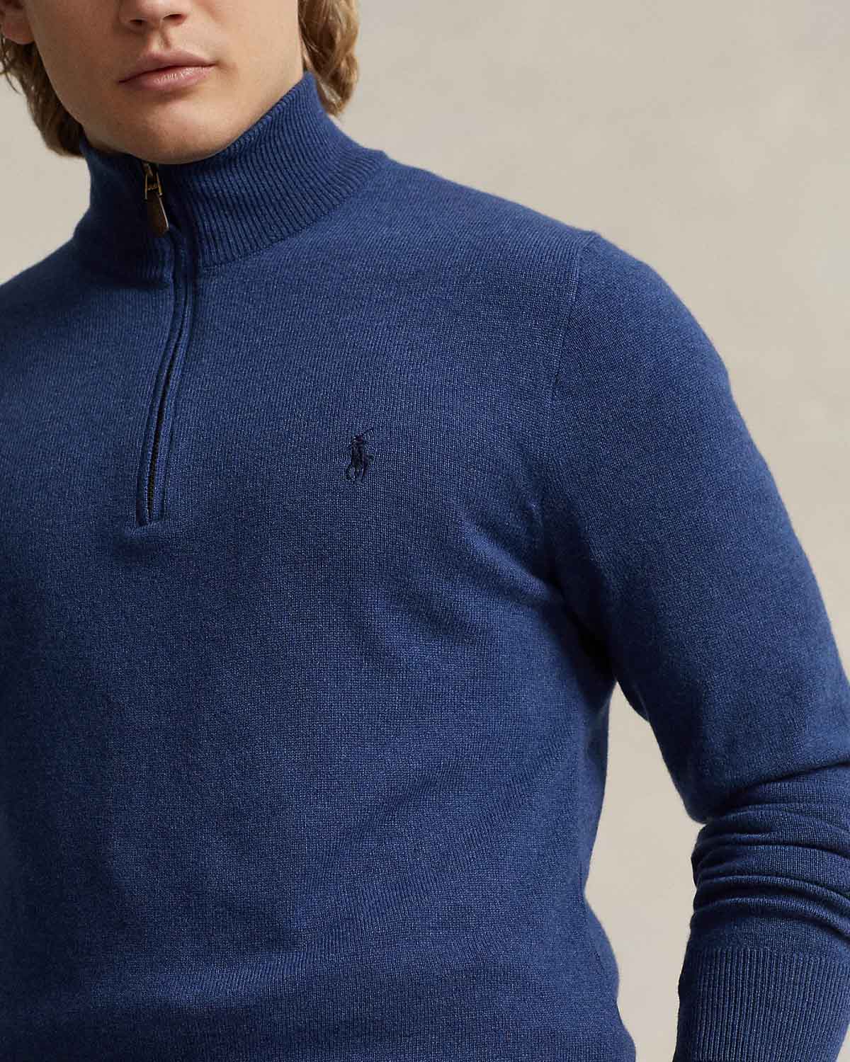 Blå half-zip genser fra Polo Ralph Lauren. HZ Long Sleeve Pullover har en rund hals, lang erm og har den kjente polospilleren brodert på brystet. En tidløs genser som er fin å ha året rundt!