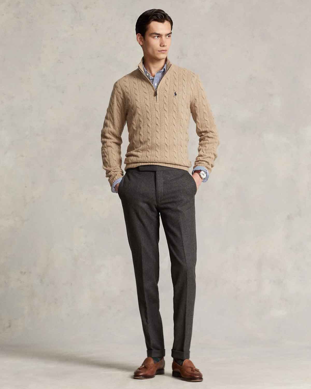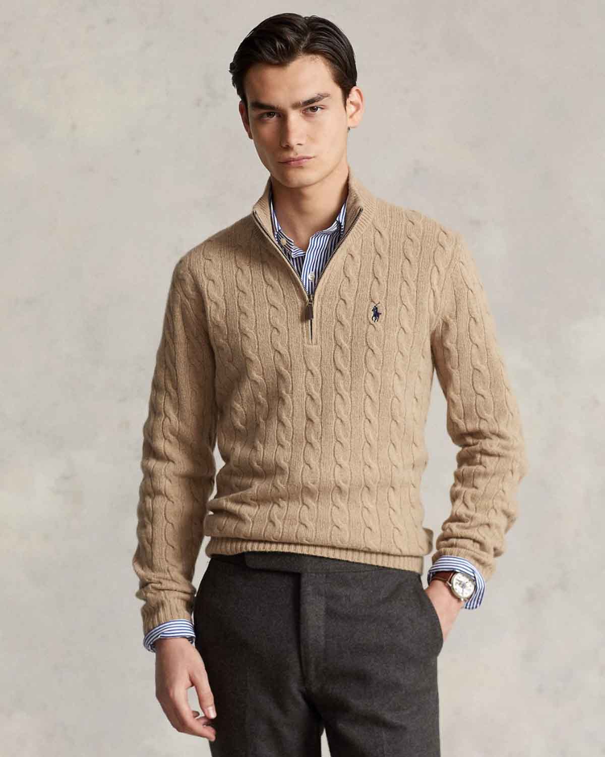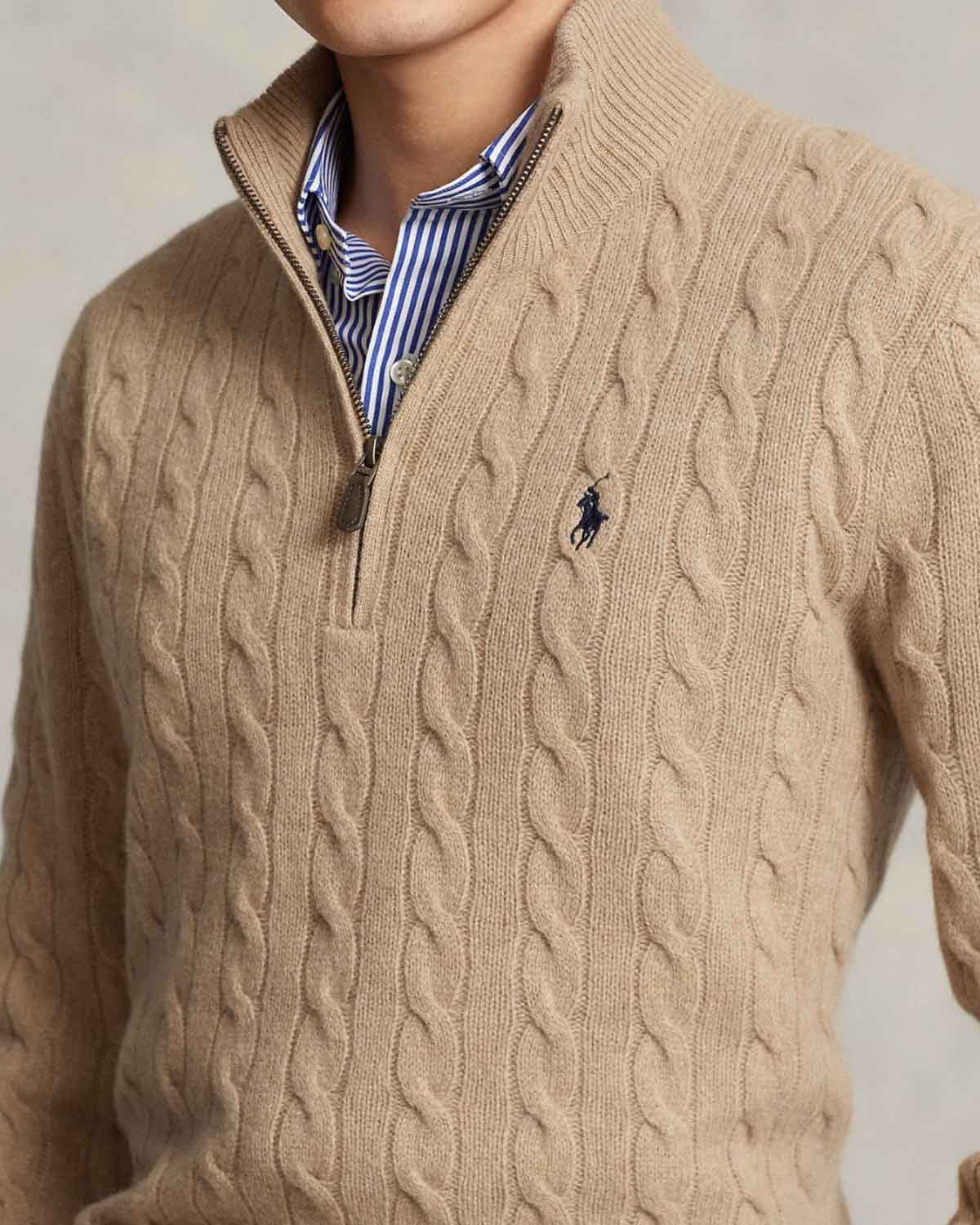 Brun half-zip genser fra Polo Ralph Lauren. Long Sleeve Pullover er en kabelstrikket genser med rund hals, lang erm og har den kjente polospilleren brodert på brystet. En tidløs genser som er fin å ha året rundt!