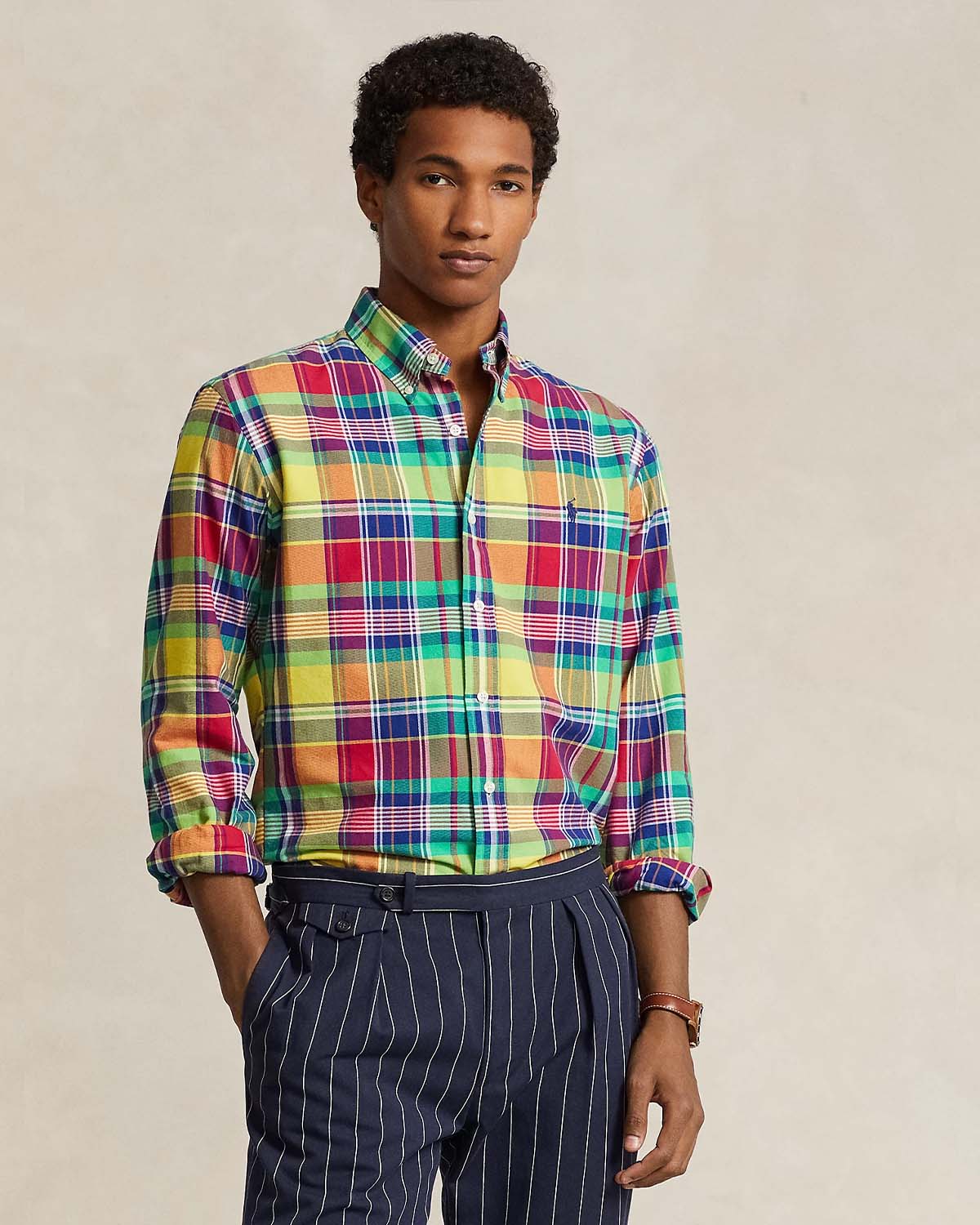 Oxford-skjorten debuterte i begynnelsen av Ralph Lauren-merket, og siden den gang har den befestet sin status som en bærebjelke i Polo-looken. I dag fortsetter Mr. Lauren å designe utallige varianter av sin ikoniske skjorte, inkludert denne Slim Fit-versjonen som er gjengitt i et levende rutemønster.