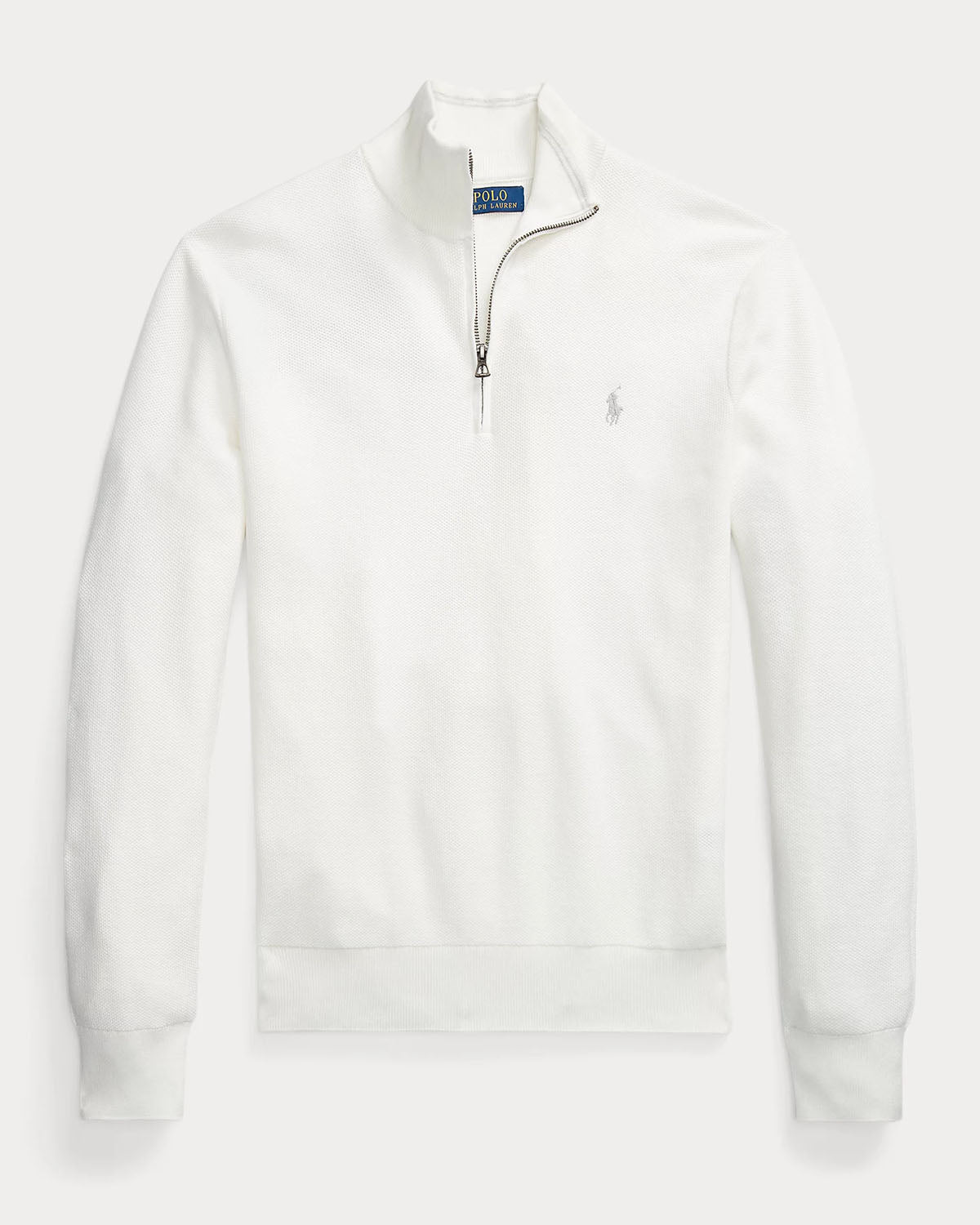 Hvit genser i myk bomull fra Polo Ralph Lauren. Long Sleeve Pullover har høy hals med glidelås og fullføres av den ikoniske logoen brodert på brystet.