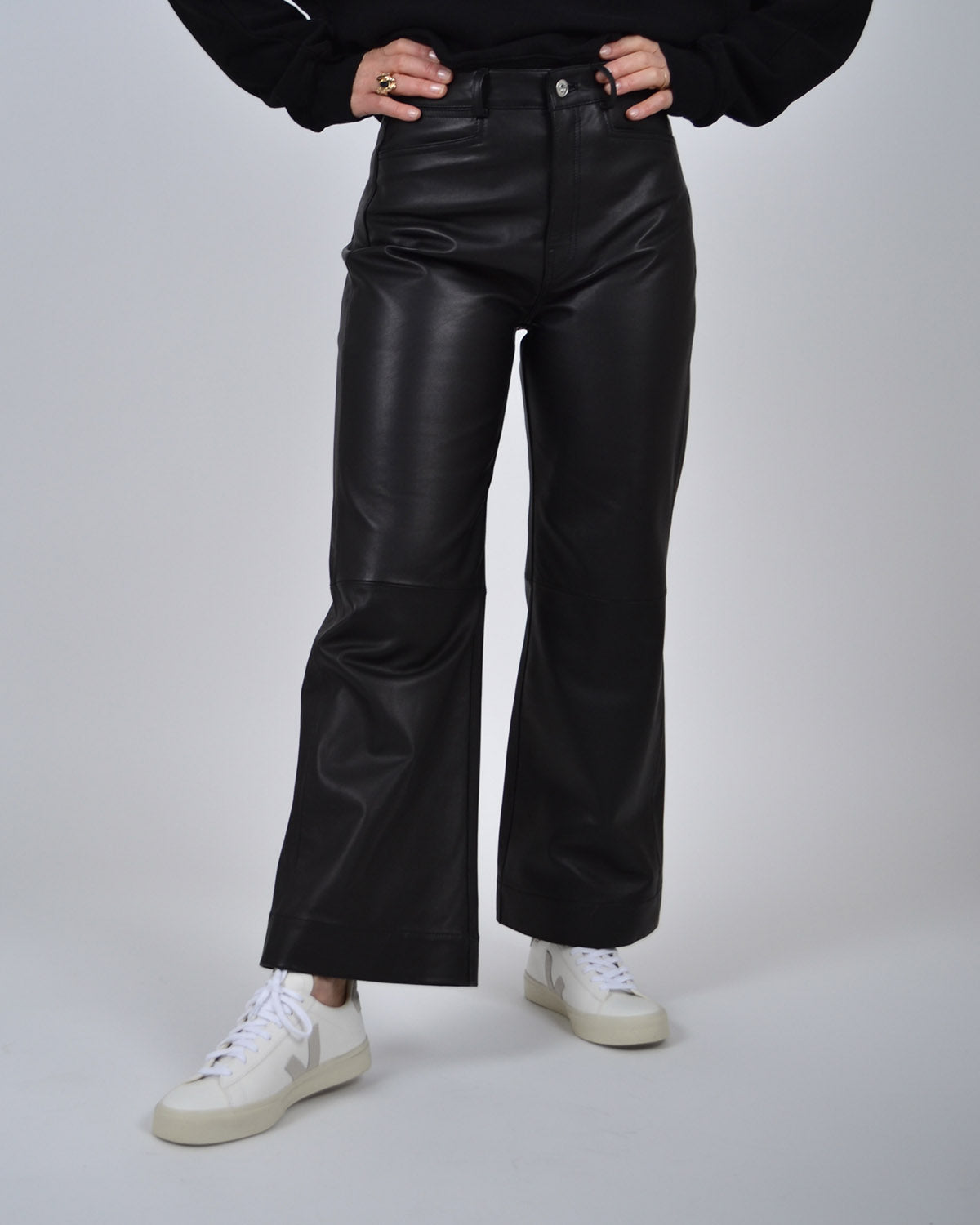 Sort skinnbukse i trendy fasong fra Proenza Schouler! Cropped Leather Pants er høy i livet, har lommer foran og bak samt hemper til belte i linning. Buksen er en vid og noe kortere modell, og passer perfekt til både hverdags og fest - vi elsker denne!