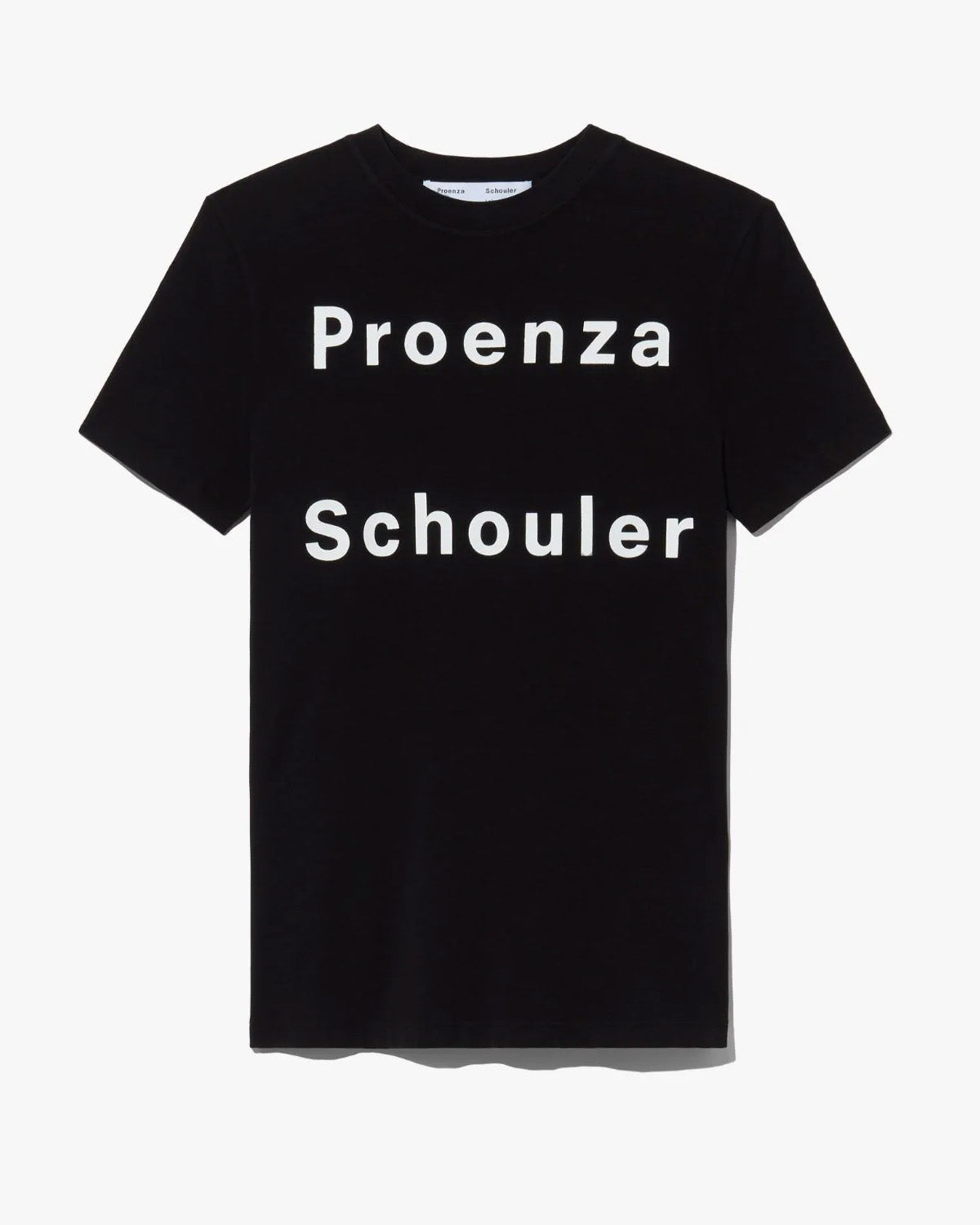 Sort t-skjorte med stor logodetalj i hvitt fra Proenza Schouler! Logo T-Shirt har en klassisk og tettsittende fasong samt rund hals og kort erm. T-skjorten er perfekt å style under blazere og andre jakker, samtidig som den er kul alene.