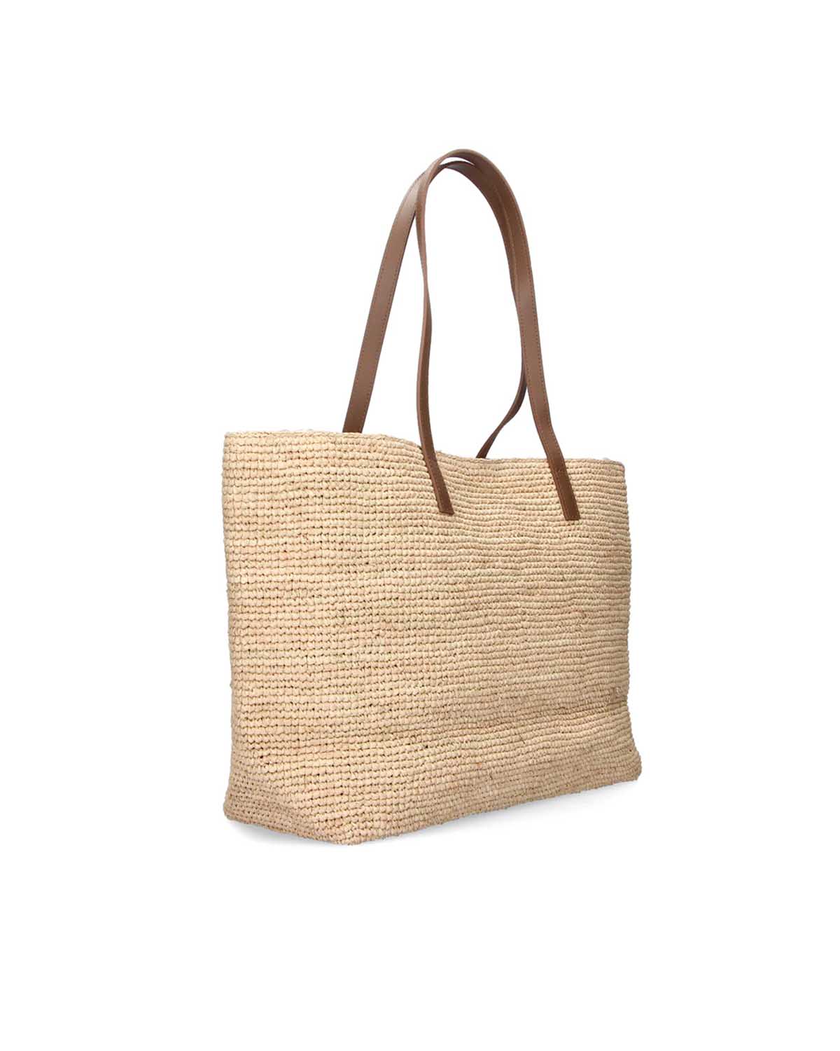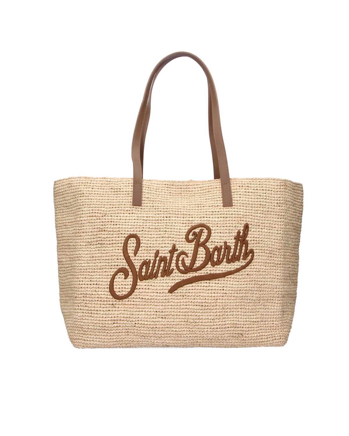Vevd veske fra Saint Barth med logo og håndtak i kontrastfarger.