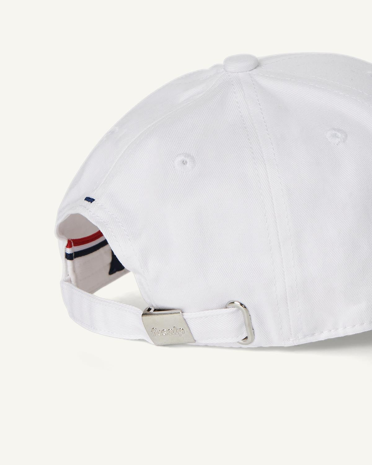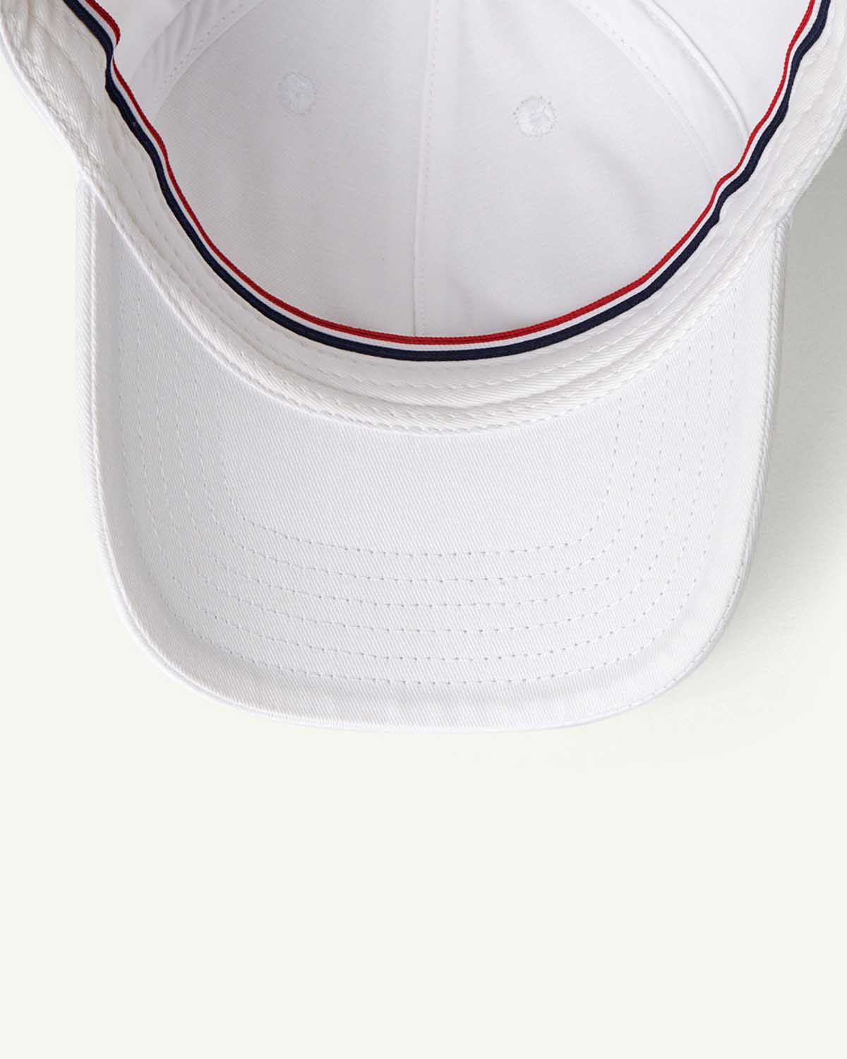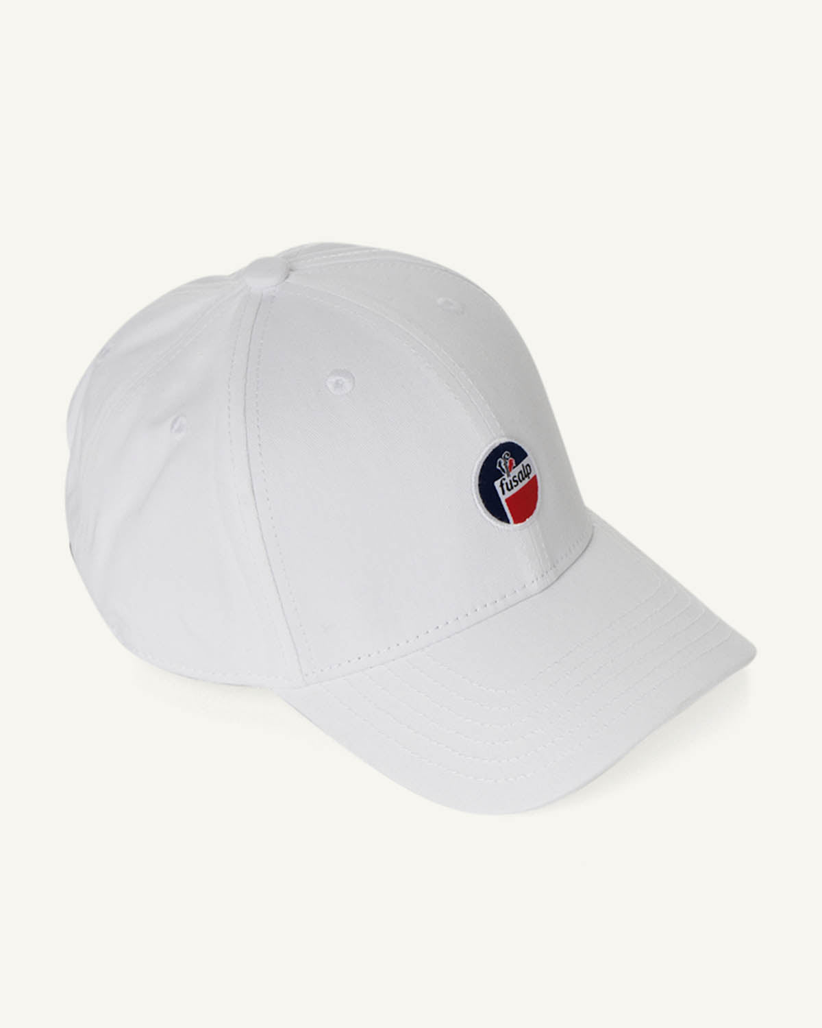 Hvi caps i bomull fra Fusalp. Charly Cap i fargetonen "Flocon" er en unisex baseball-cap med justering bak og den kjente logoen i blått, hvitt og rødt foran.