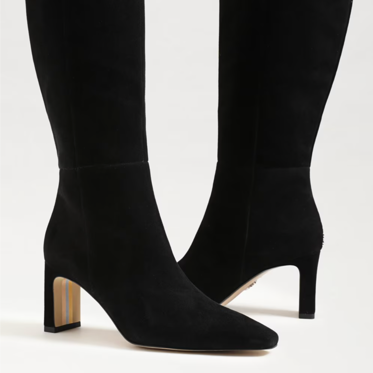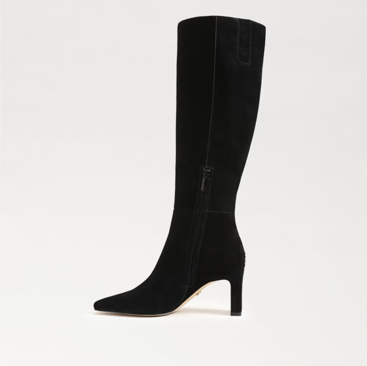 Oppgrader garderoben din med en høy støvel. Sylvia er lekker sort støvlett med en elegant spiss i luksuriøst skinn. Brukes like gjerne med smale bukser som til en elegant kjole og hverdag skjørt.