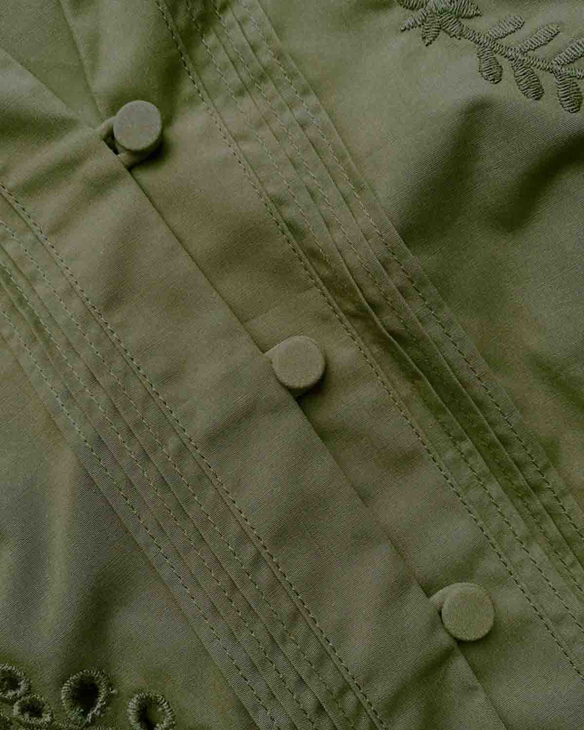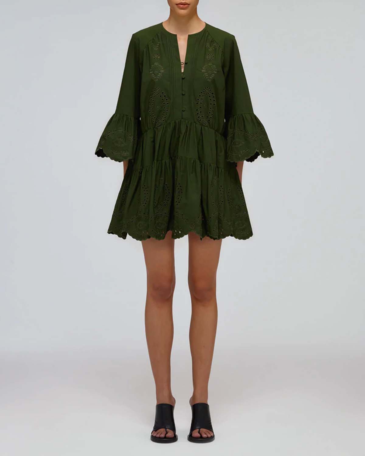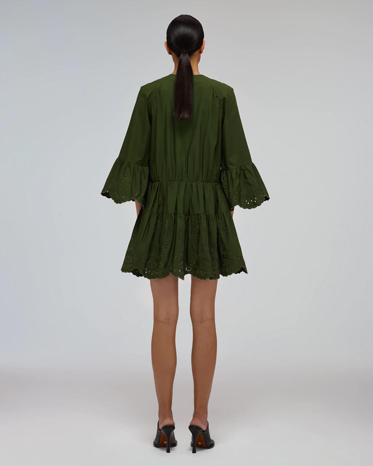 Khaki Broderie Organic Cotton Mini Dress