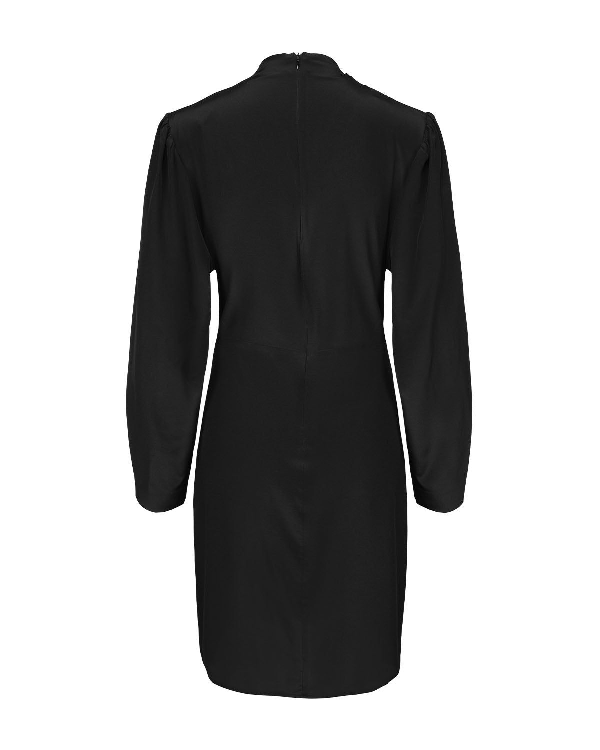 Kort, sort kjole i nydelig silke fra norske Envelope1976. Jet Dress Black har et tidløst design med det lille ekstra, og er den perfekte "lille sorte". Kjolen har en noe høyere hals, lang erm, glidelås bak og fullføres av flatterende rynkedetaljer foran. Like fin til bare ben på sommeren som til strømper på vinteren!