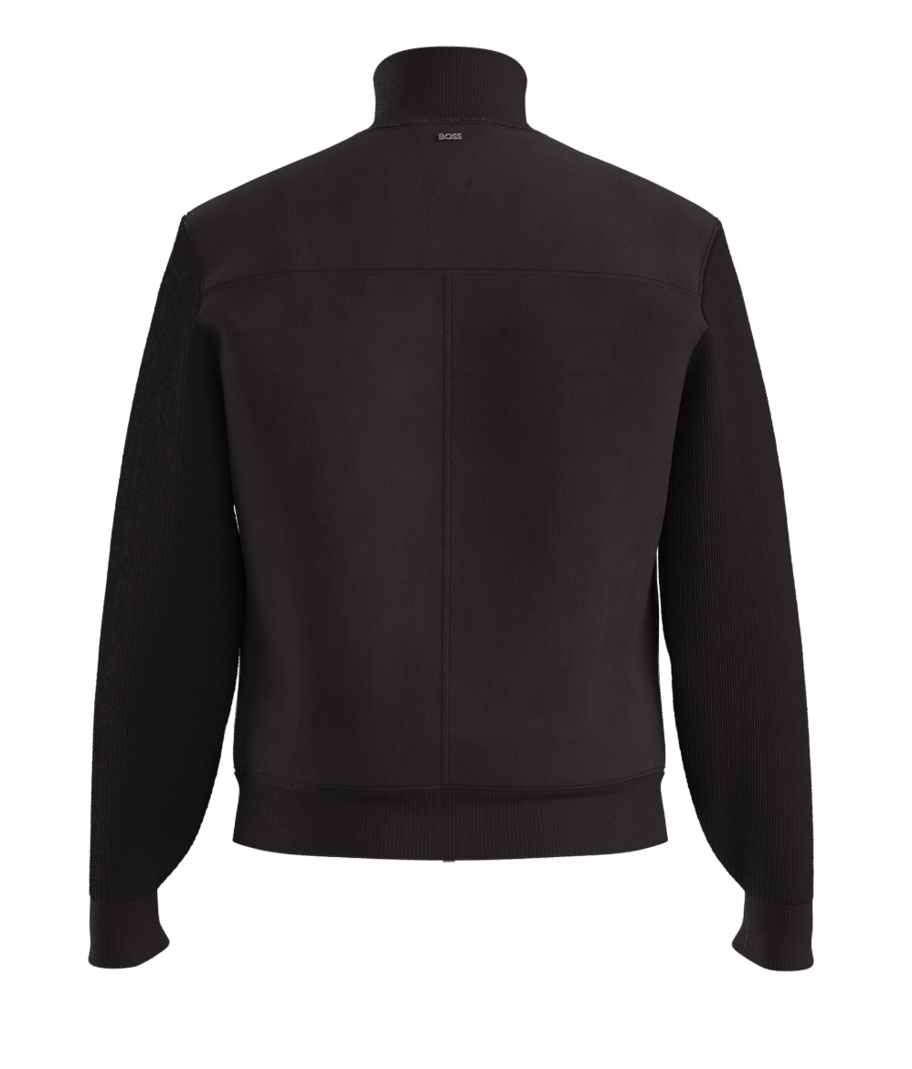 Frisk opp sesongens yttertøy med denne lekre BOSS skinn jakken. Cuff i bomullsblanding med myk kropp i semsket skinn. Toveis glidelås.