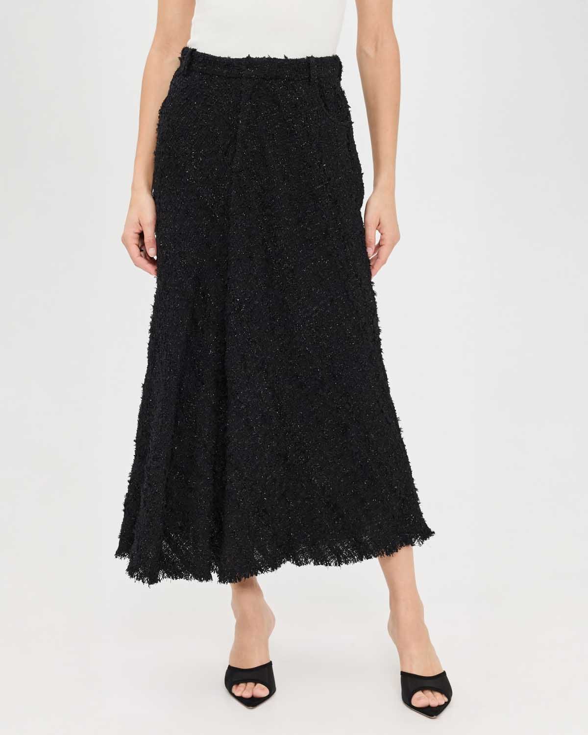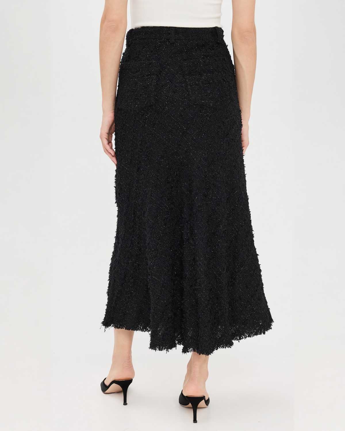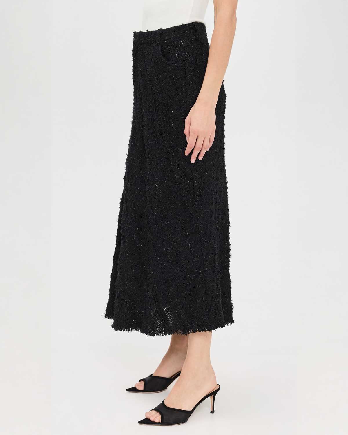 IRO Samden-skjørtet er laget av mellomtung, ikke-elastisk tweed med metalltråder over hele linjen. Dette miniskjørtet har skrå hoftelommer, påsydde baklommer, hektelukking i midjen og knappgylf.