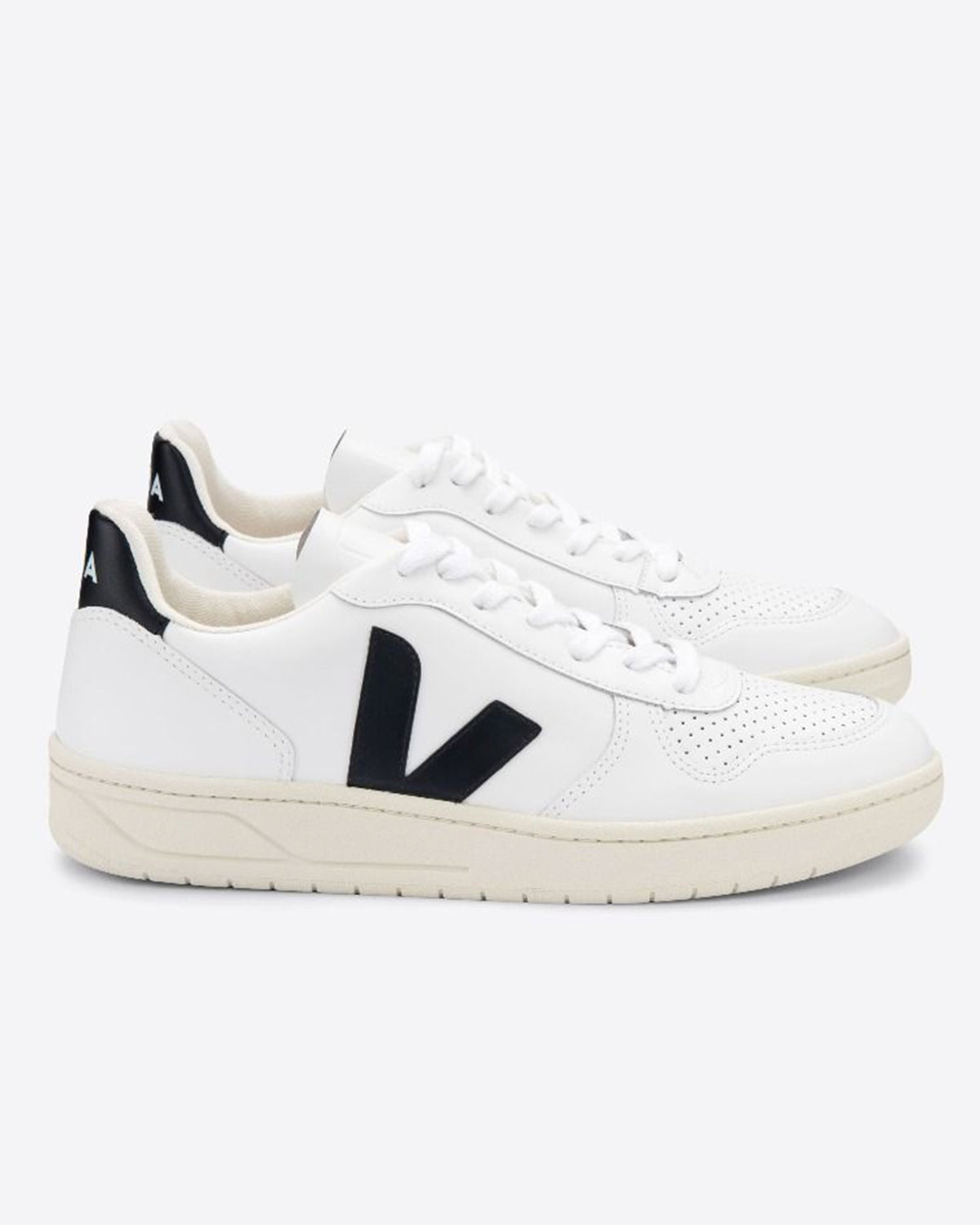 Veja V-10 Leather Extra White Black er en stilig sneaker til dame i hvit med sorte detaljer.