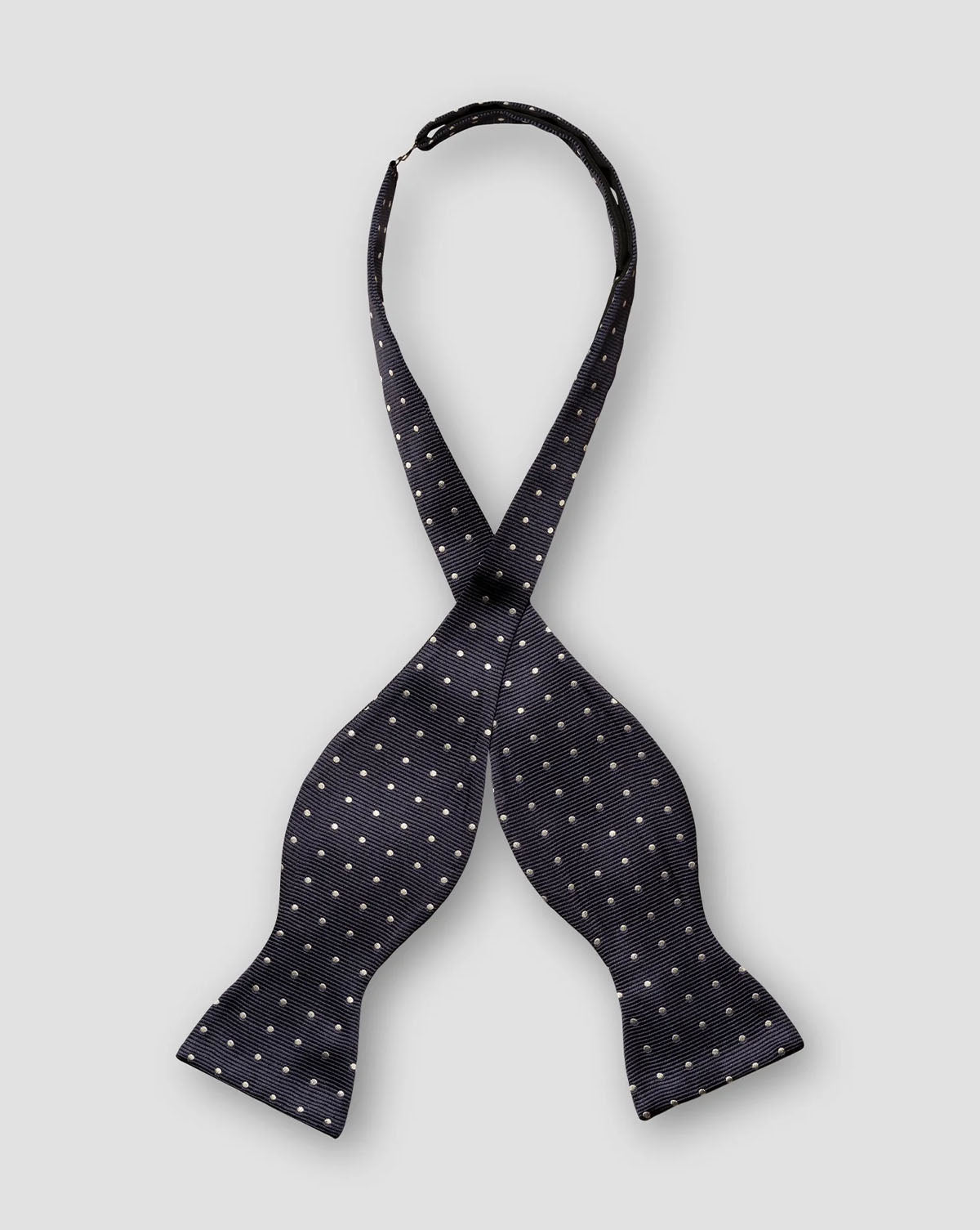 En Ivy League-inspirert sløyfe laget av 100% silke med et klassisk prikkete mønster. Ferdigknyttet og laget i Italia.