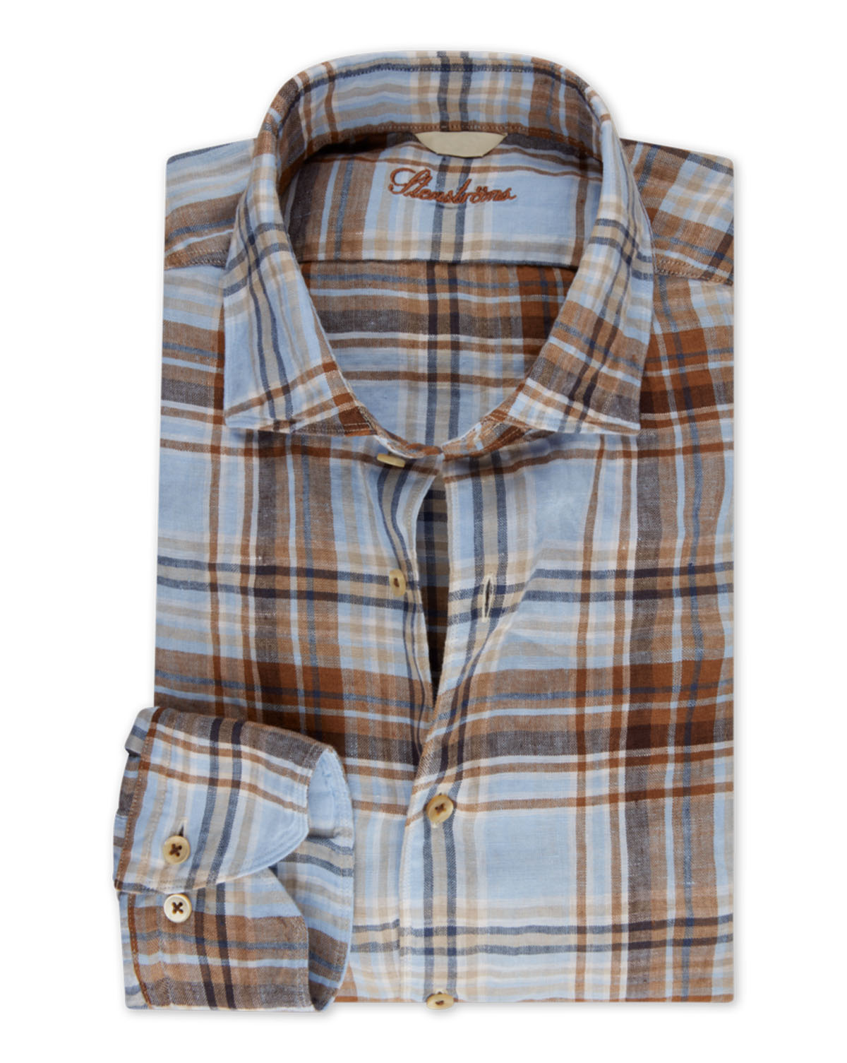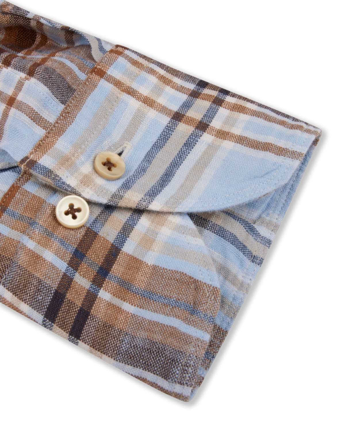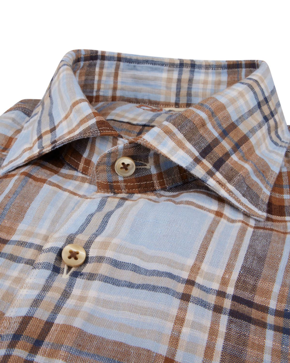 Denne avslappede, rutete skjorten er laget i lin og har perlemorsknapper, enkle mansjetter og cut away-krage.