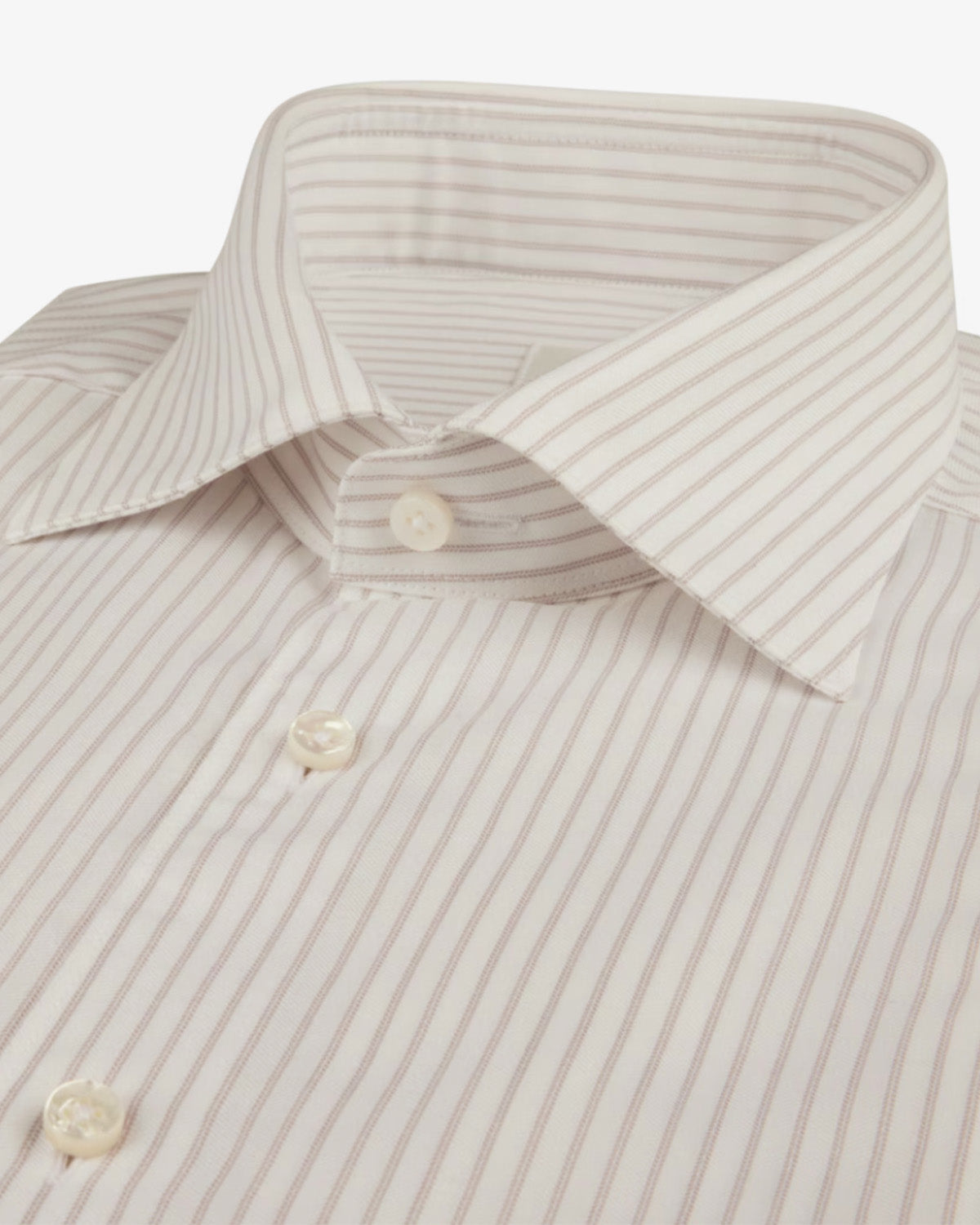 Denne stripete twillskjorten er laget av todelt bomull og er detaljert med perlemorknapper, enkle mansjetter og en avskåret krage.
