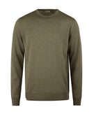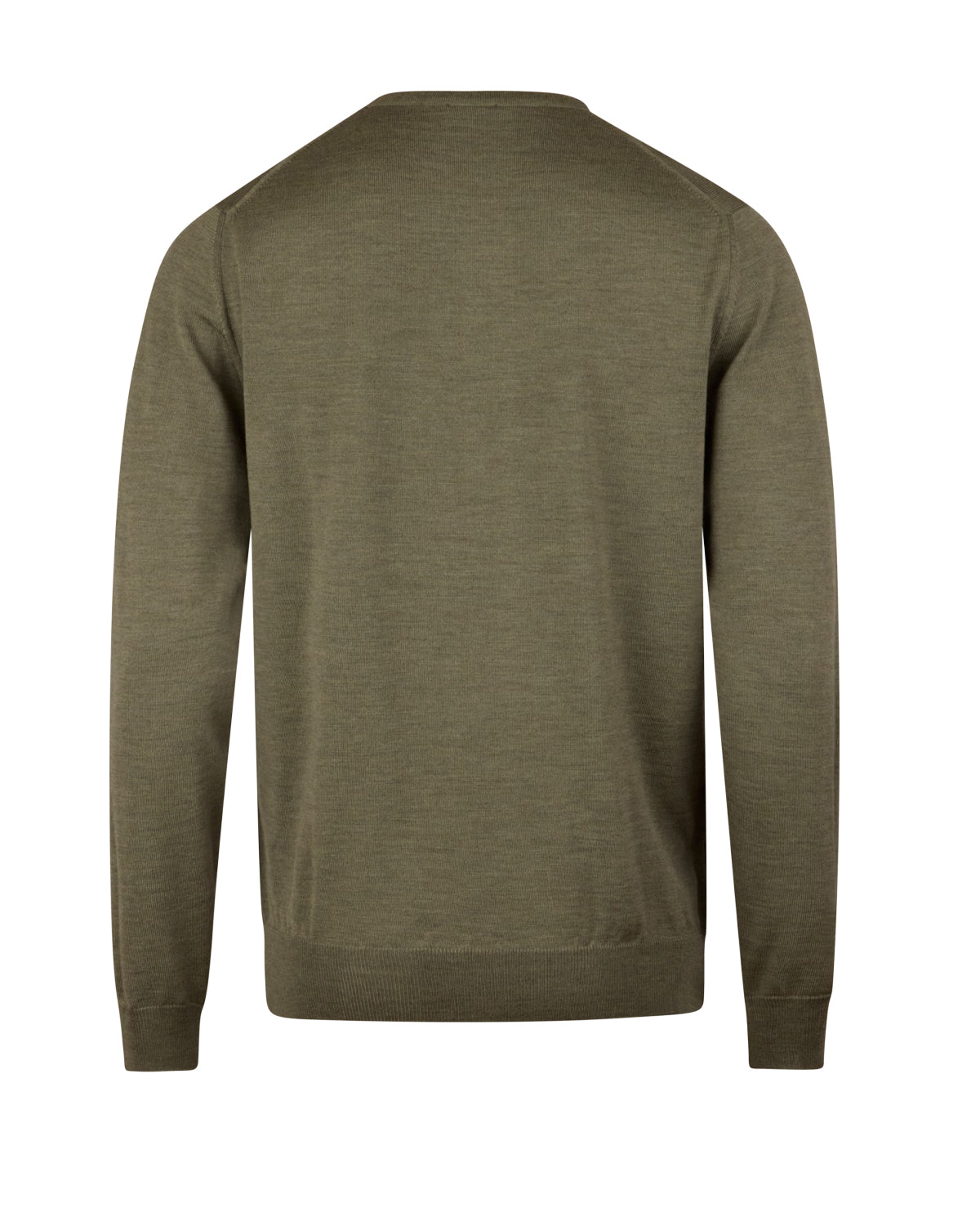 Denne genseren med rund hals er laget av merinoull og har ribbestrikket krage og mansjetter.