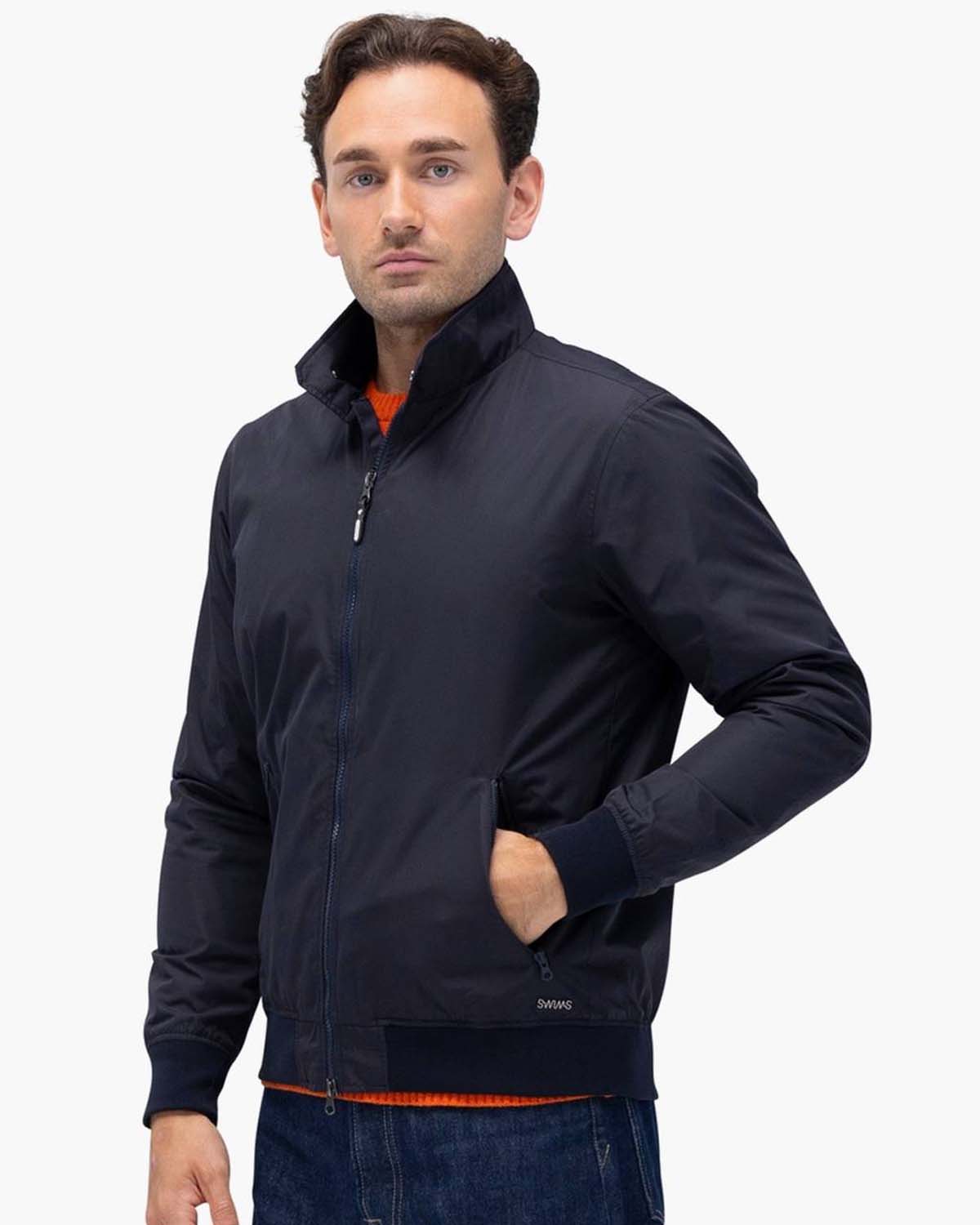 Denne korte jakken er det ultimate uformelle lagdelte plagget. Blouson Short Jacket er utstyrt med høy krage og 2-veis glidelås foran. Den er bygget med håndlommer med glidelås og en indre lomme med glidelås i førsteklasses metaller. En ribbet kant og mansjetter holder denne jakken komfortabel og sikker.