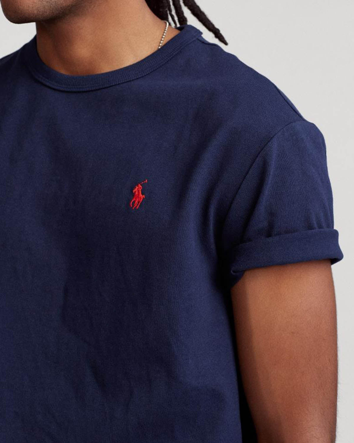 Klassisk t-skjorte i tidløs marineblå fra Polo Ralph Lauren. Short Sleeve T-Shirt har rund hals og kort erm, og fullføres av den kjente polospilleren brodert i rødt på brystet.