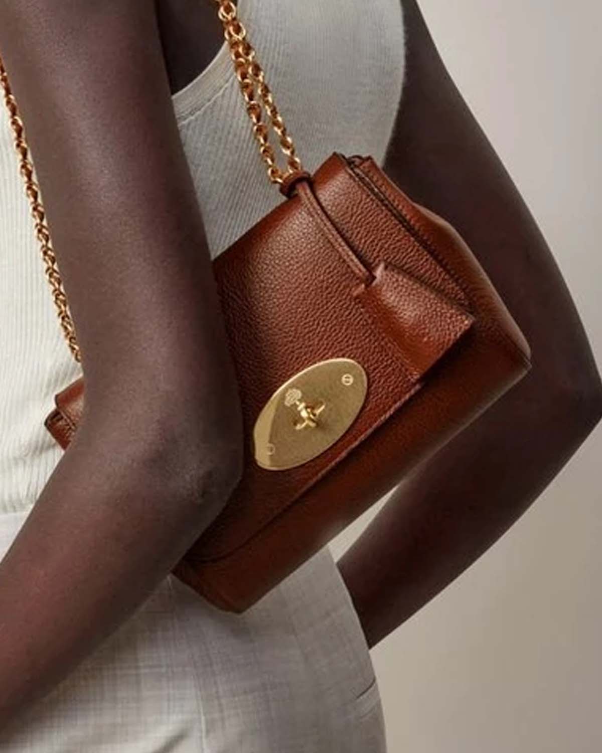 Lily er en uanstrengt elegant stil som ofte velges som kveldsveske på grunn av sin allsidige størrelse og kompakte form. Lily har en vevd lær og kjedestropp som kan brukes kort eller lang, og er detaljert med signaturdetaljer som deres ikoniske Postman's Lock og lærhengelås.