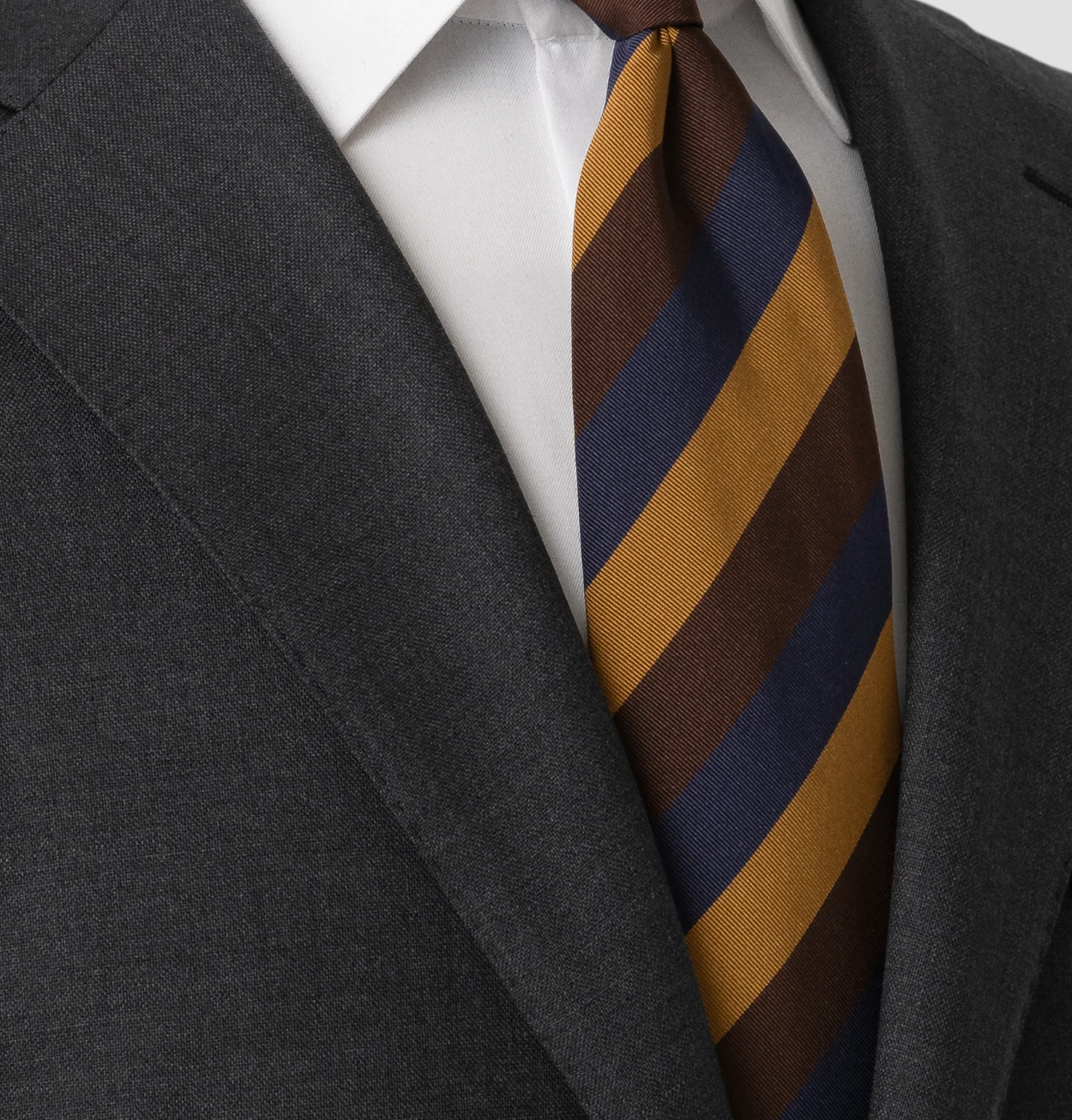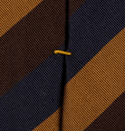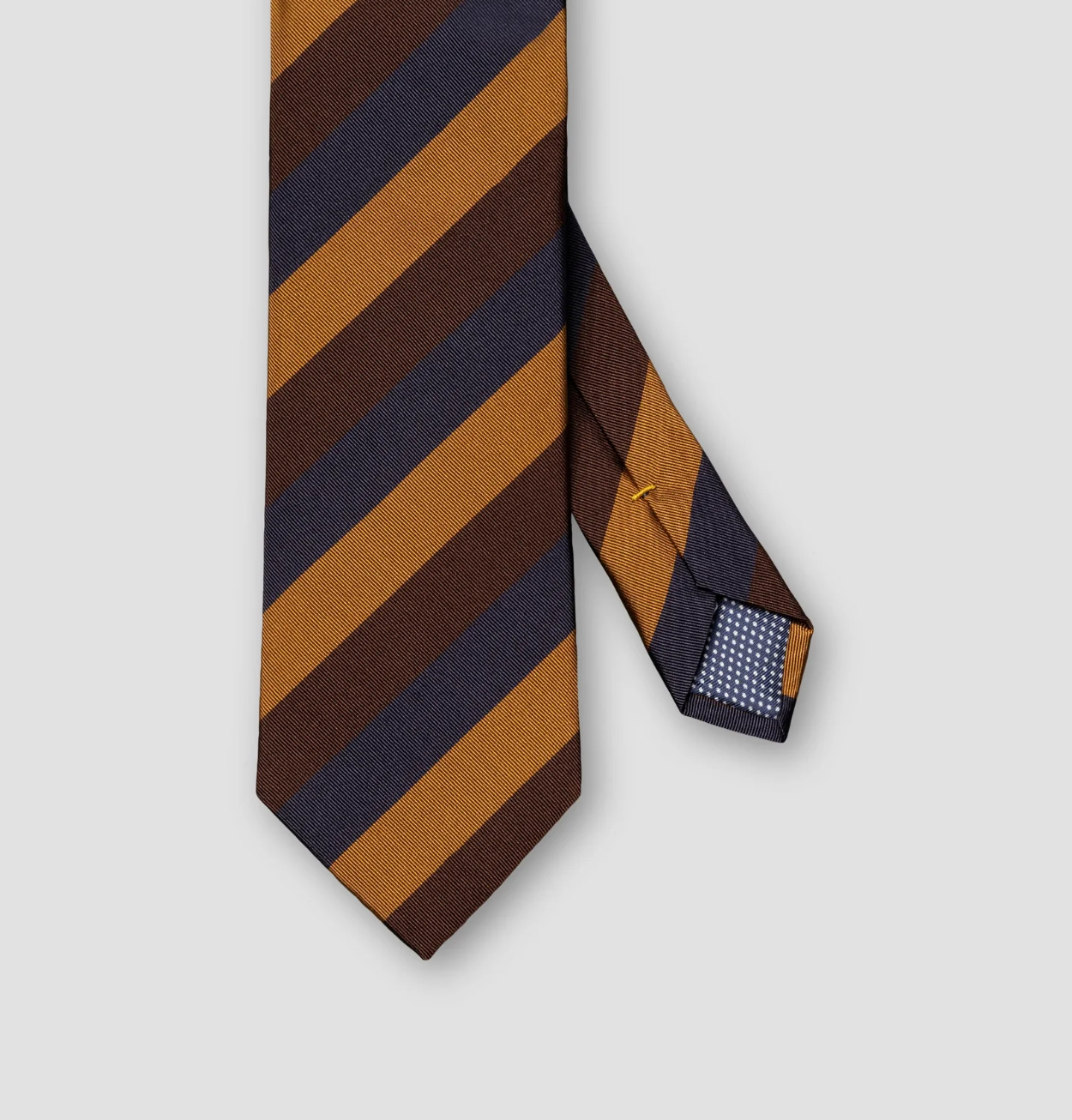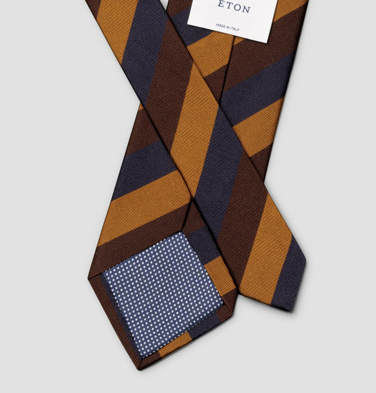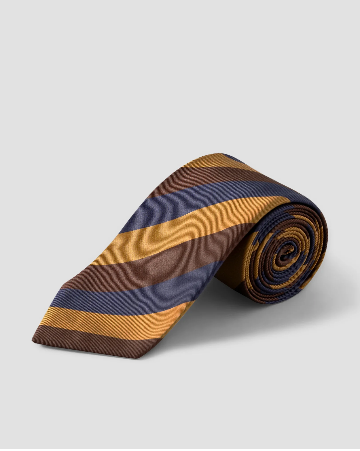 Et slips vevd i en strukturert blanding av silke og bomull Mogador for en matt tekstur og rik følelse. Definert av skarpe striper, gir den en moderne preppy touch til forretnings- og anledningsklær.