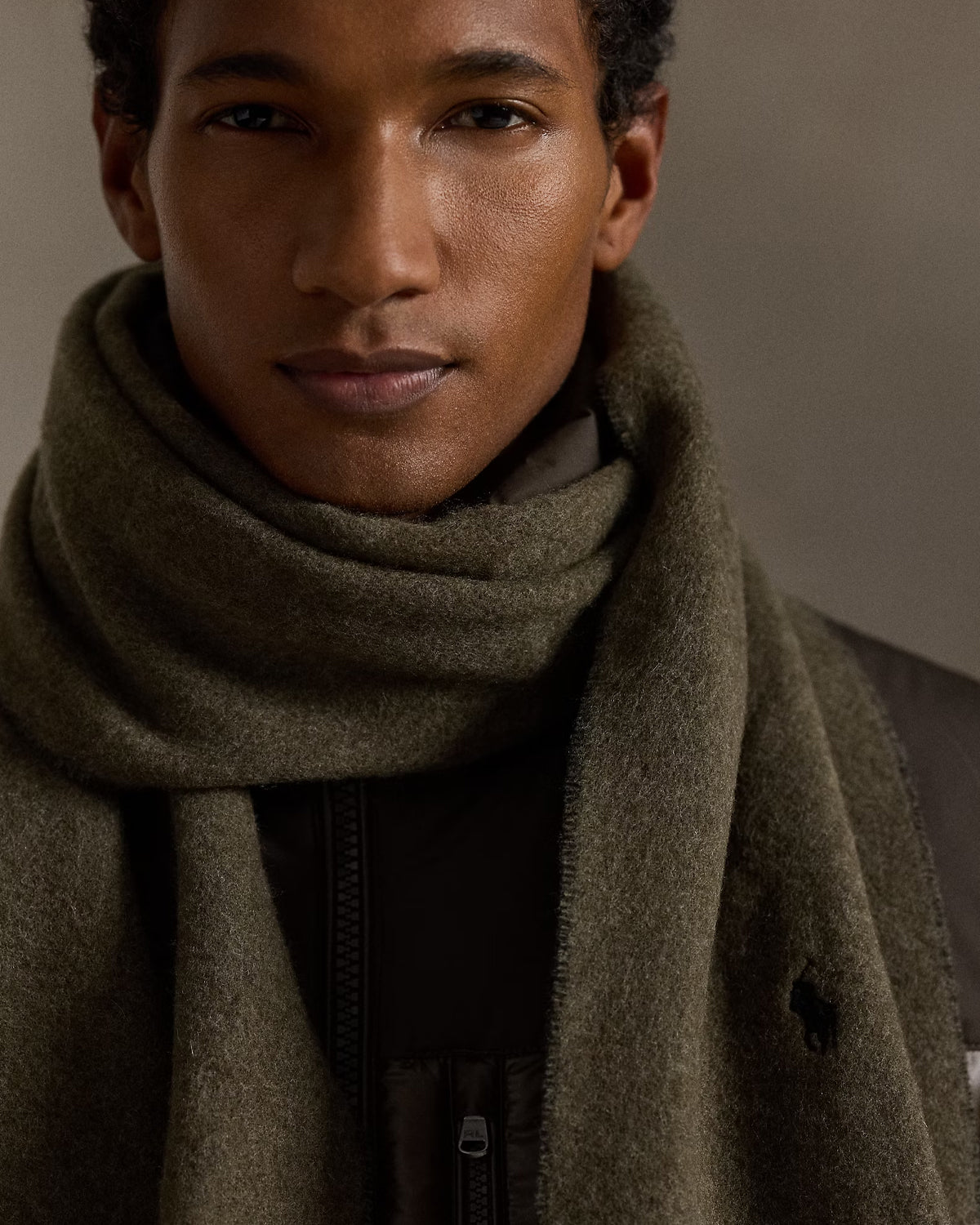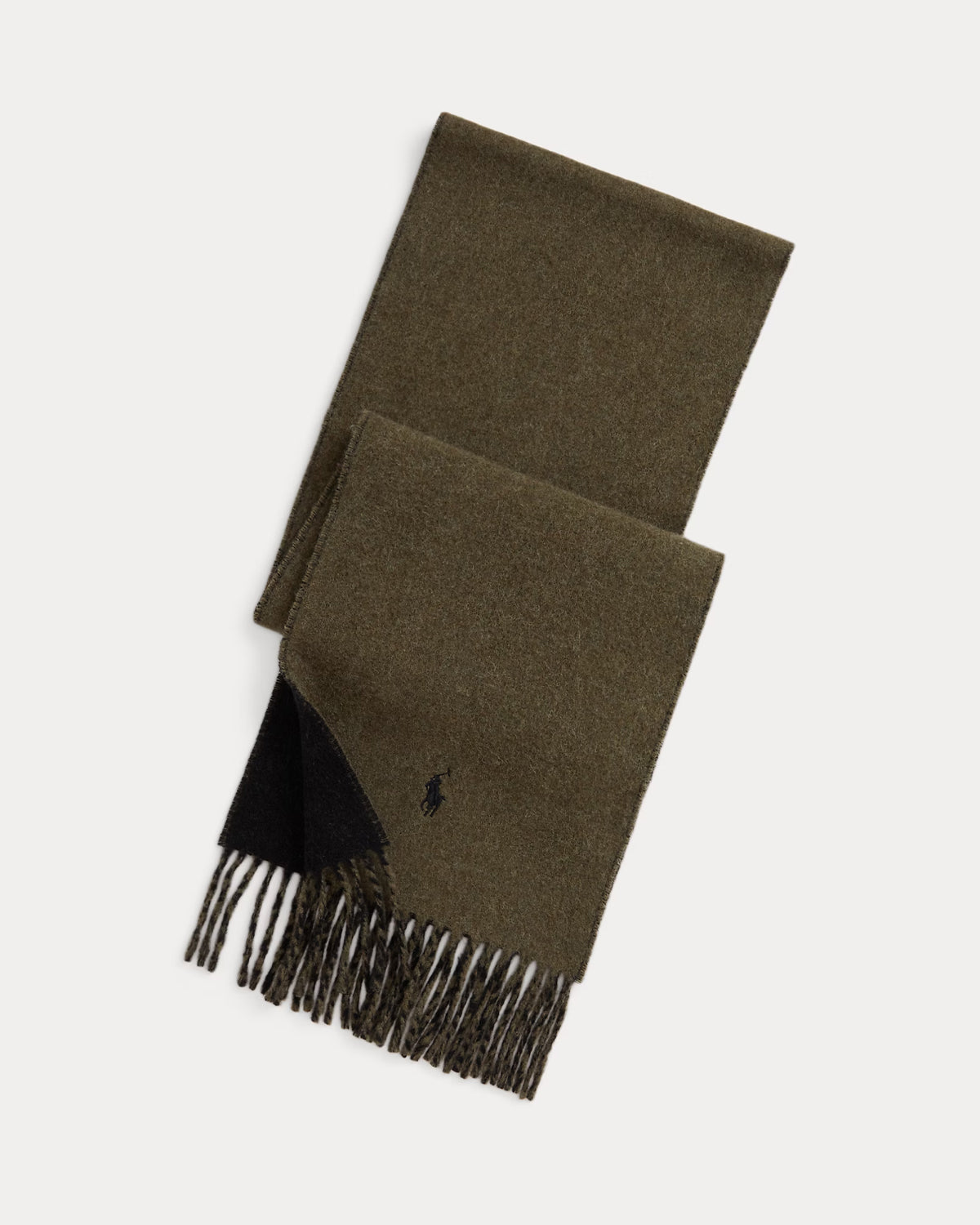 Dette italienskproduserte skjerfet er laget av en myk ullblanding og har en komplementær fargetone på baksiden.