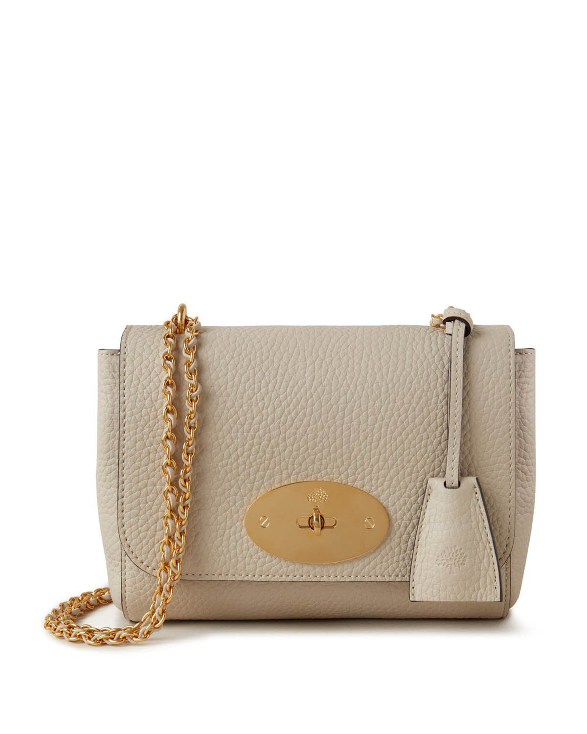 Kalk farget veske med gull detaljer fra Mulberry. Lily chalk heavy grain, har et uanstrengt og elegant design. Vesken blir ofte brukt som selskapsveske på grunn av sin størrelsen., men kan fint brukes som en lekker hverdagsveske. Lily har en dekorativ lenke som kan bæres cross body, eller dobbelt dersom du vil ha den kortere over skulderen. Lily har den ikoniske låsen Postman's Lock.