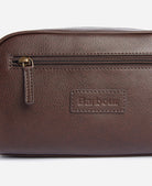 Barbour skinn toalettmappe har en robust tekstur og litt grov skinn kvalitet med avrundede kanter.