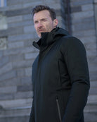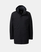 Regulator Parka Savile fra UBR i navy. Elegant parkas til herre med ytterlag av italiensk merinoull, spesiallaget for UBR. Vindtett og vanntett modell med 20 000 mm vannsøyle. Avtagbar pels på innsiden av kragen, og avtagbar hette. To lommer i front og flere lommer på innsiden. Rekker ned til midten av låret.