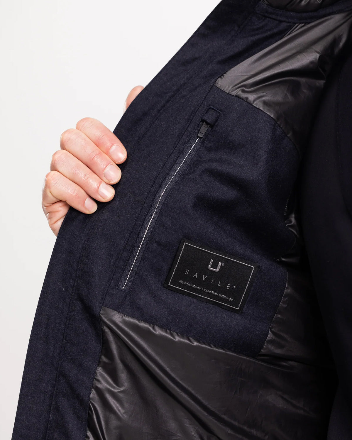 Concord Savile bærer preg av et ikon kjent for sin unike kombinasjon av eksklusivitet og konstruksjon. Denne parkasen kombinerer den isolerende kraften til premium gåsedun med sofistikasjonen til eksklusiv italiensk merinoull, og gir eksepsjonell varme og beskyttelse. Raffinert og diskret – et plagg for de som forstår den stille selvtilliten ved ekte luksus.