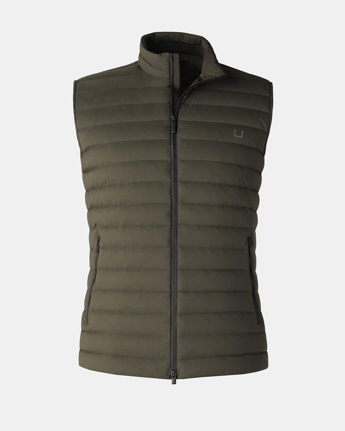 Grønn dunvest til herre fra UBR. Supersonic Vest Night Olive er en lett vest med god pusteevne. Vesten er vindtett og vannavvisende, og er like fin alene som under favorittjakken eller blazeren!