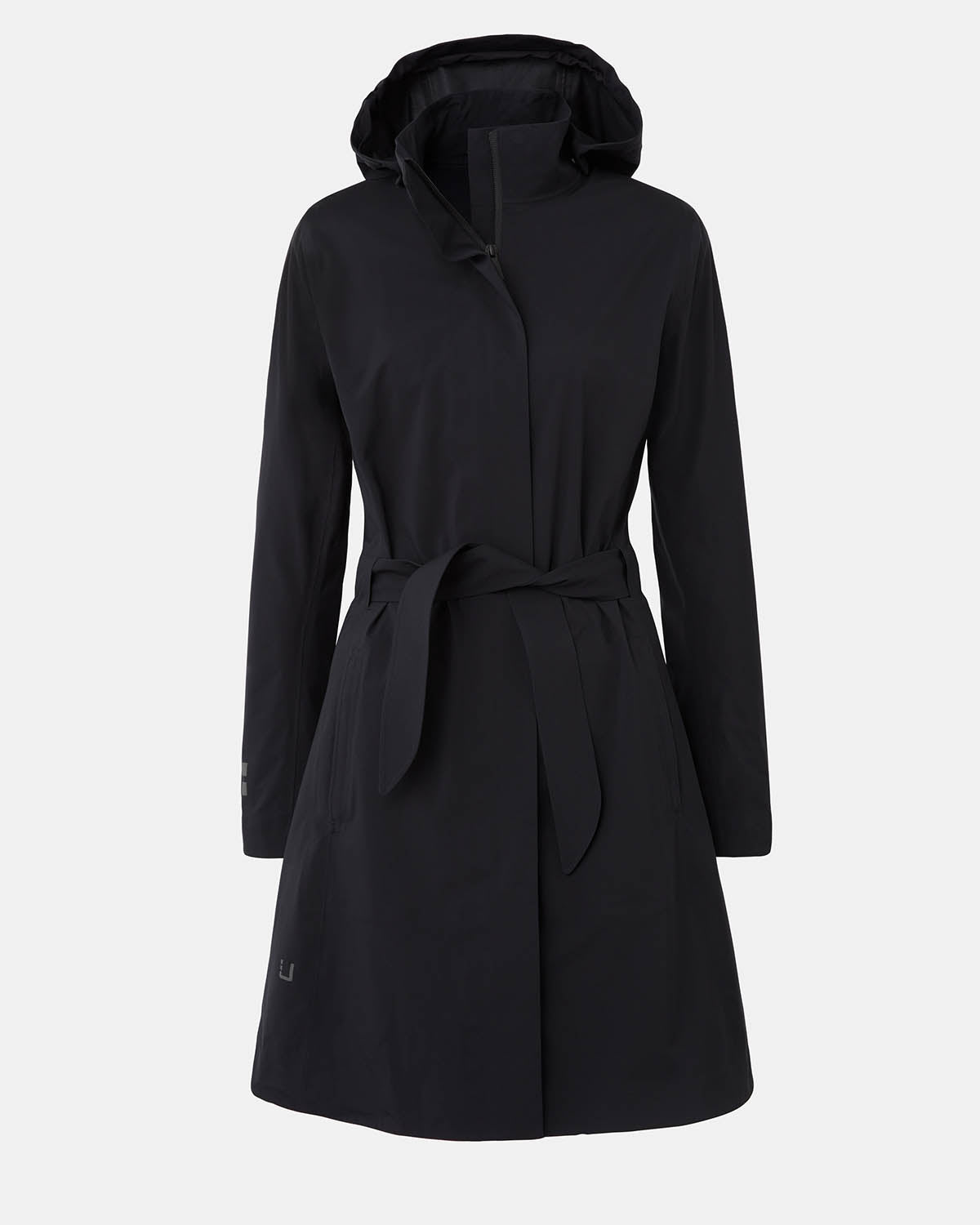 Sort, superlett jakke til dame fra UBR. Elektra Coat Black Storm er en stilren jakke med belte i midjen som skaper et feminint uttrykk. Jakken er vanntett, har god pusteevne, avtagbar hette og 4-veis stretch. Like fin til hverdags som over antrekket når du skal pynte deg på regnværsdagene!