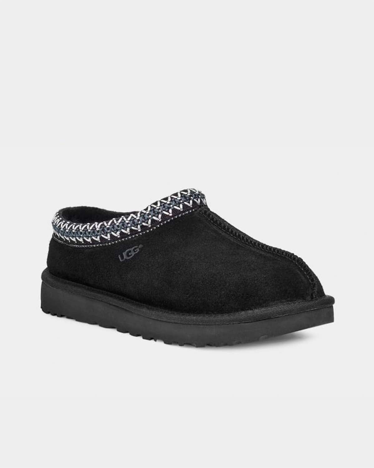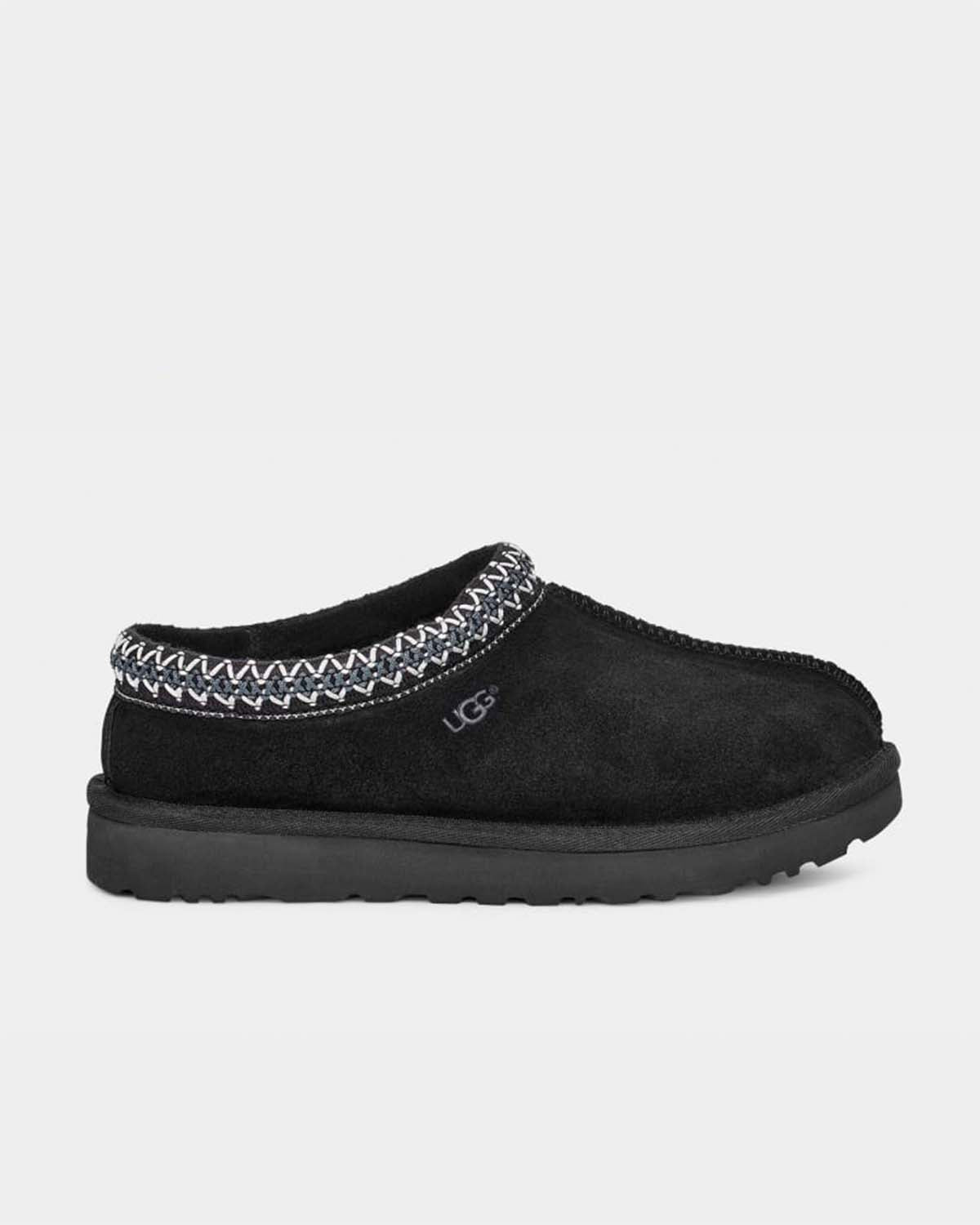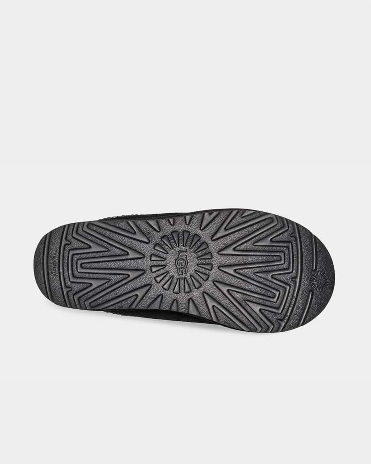En tøffel for alle anledninger - UGG sine bestselgende Tasman har ultralette, slitesterke yttersåler, slik at du kan bruke den innendørs og utendørs. Den er foret med plysj saueskinn og resirkulert ull, og er laget av mykt semsket skinn med en brodert flette og en enkel silhuett. Bruk sammen med boyfriend-jeans og en strikket genser.