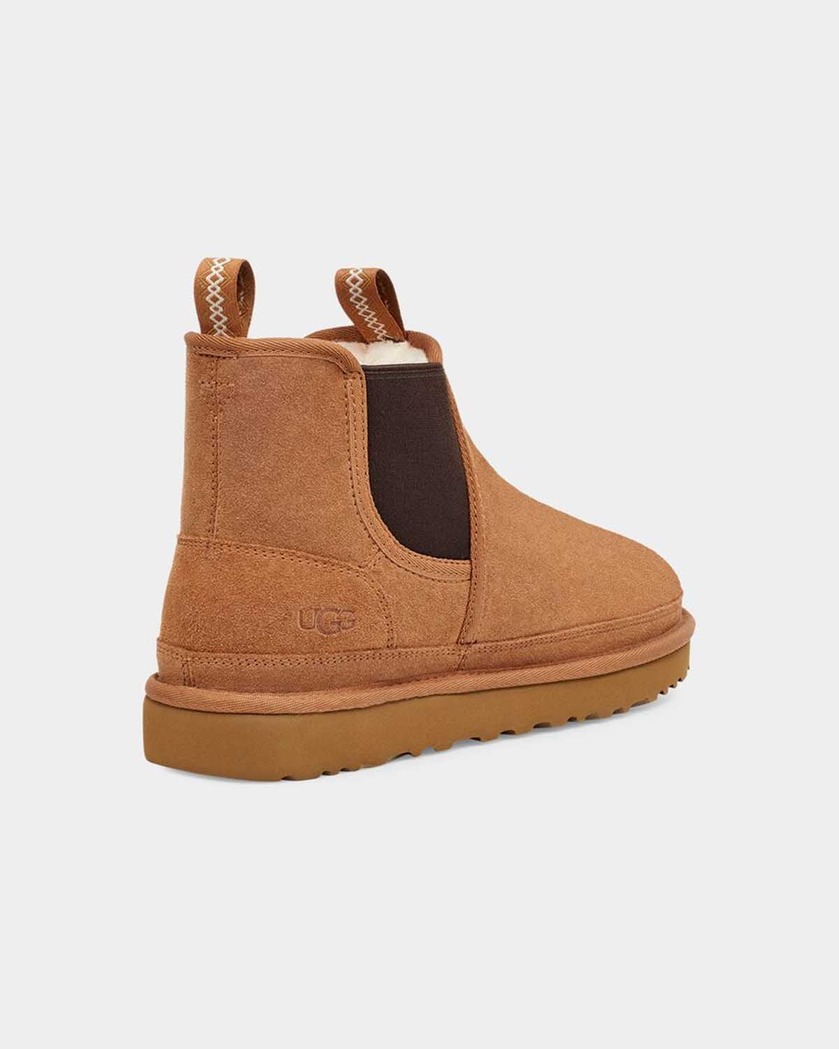 Semsket vintersko til herre fra Ugg! Neumel Chelsea Chestnut er en stilren, lys brun sko fôret med god og varm ullblanding. Skoen har et tidløst design og kan enkelt kombineres til vinterens hverdagsantrekk.
