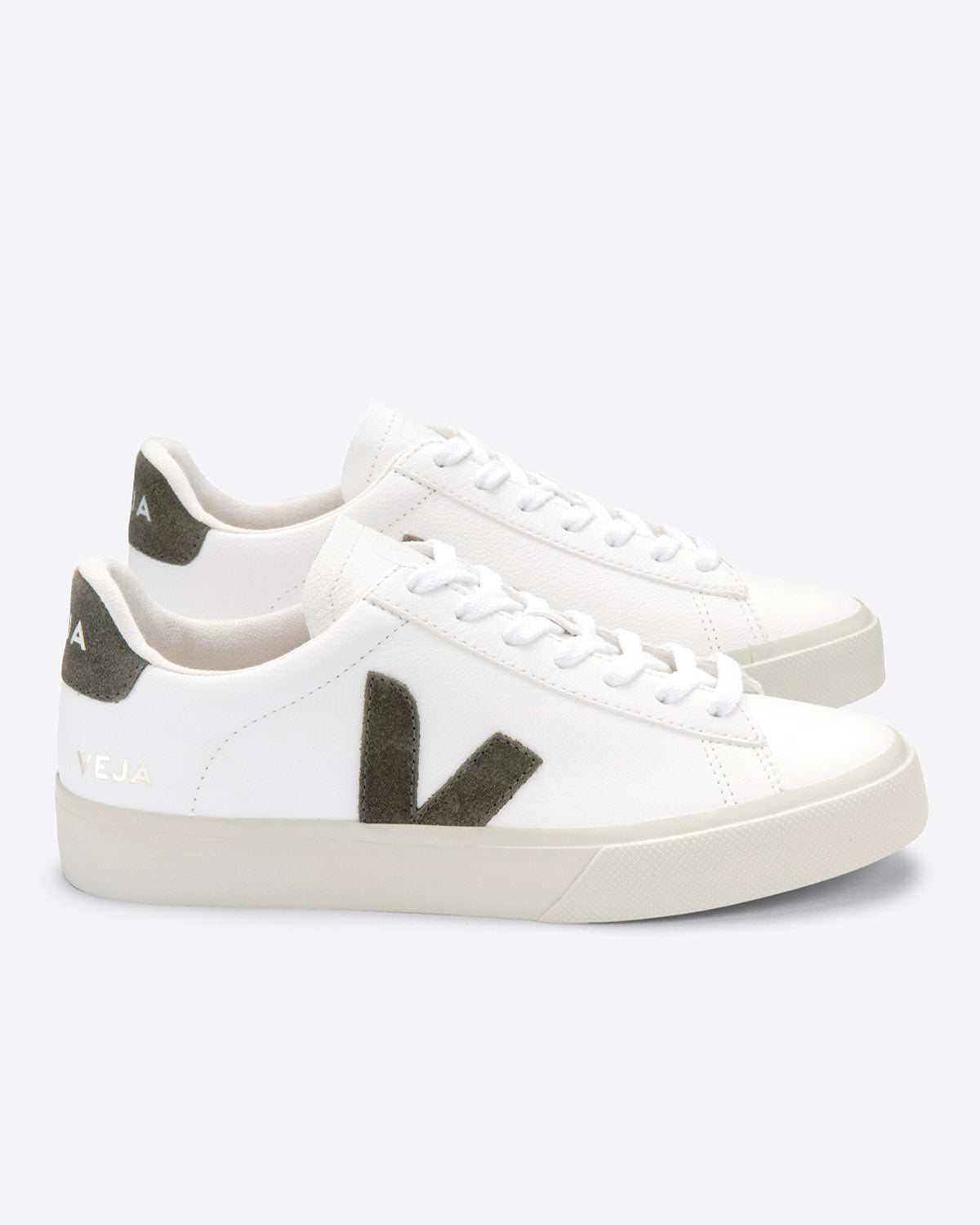 Den stilrene favoritten fra Veja med grønne detaljer! Men's Campo Chromefree White Kaki er en hvit sneaker i skinn med semskede logodetaljer i mørk grønn. Skoen har et tidløst uttrykk og er enkel å style til hverdagsantrekkene!